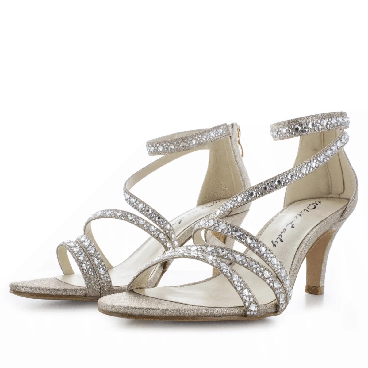 Die schönen Abendschuhe 865 Champagne mit Glitzern aus der White Lady Kollektion . Die Schuhe sind aus Textil in Farbe Champagne gefertigt und mit Glitzern und Strass verziert. Dank dem 6,5 cm hohen Pfennigabsatz, sind diese Abendschuhe besonders bequem beim Laufen und Stehen. Selbst Tanzen wäre keine große Herausforderung, da die Decksohle innen gepolstert ist. Das Modell 865 Champagne mit Glitzern passt für normal weite Füße. Diese Sandaletten sind besonders bequem und sehen elegant aus!