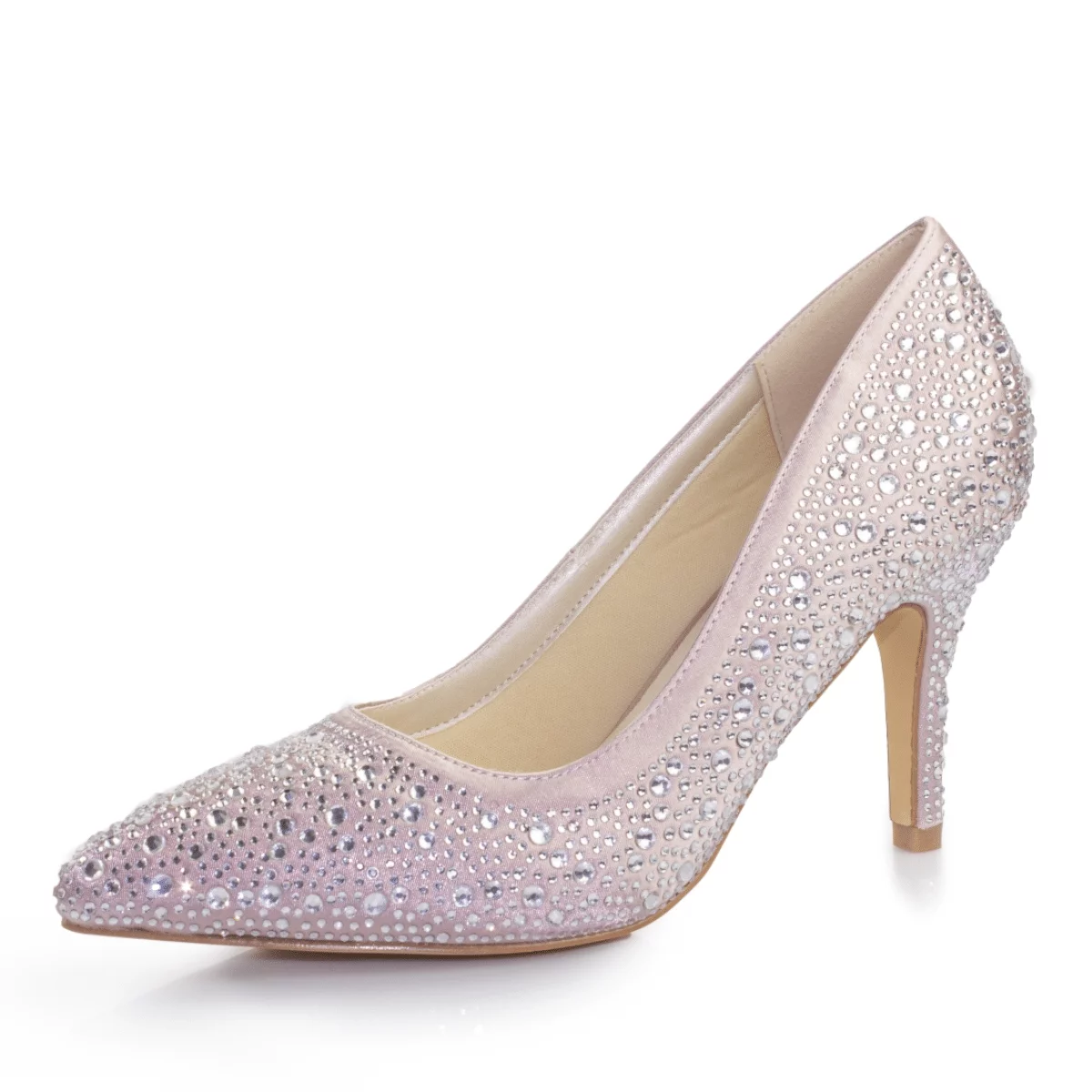 Die schönen Abendschuhe 920 Rosa mit Strass aus der White Lady Kollektion heben dein Brautlook ins Rampenlicht und bringen Farbe ins Spiel. Die Schuhe sind aus Textil in Farbe Rosa gefertigt und mit Strasssteinen verziert. Dank dem 8 cm hohen Pfennigabsatz, sind diese Abendschuhe besonders bequem beim Laufen und Stehen. Selbst Tanzen wäre keine große Herausforderung, da die Decksohle innen gepolstert ist. Das Modell 920 Rosa mit Strass passt für normal weite Füße. Diese klassische Pumps verzaubern dein Brautlook dank der trendigen Farbe Rosé!