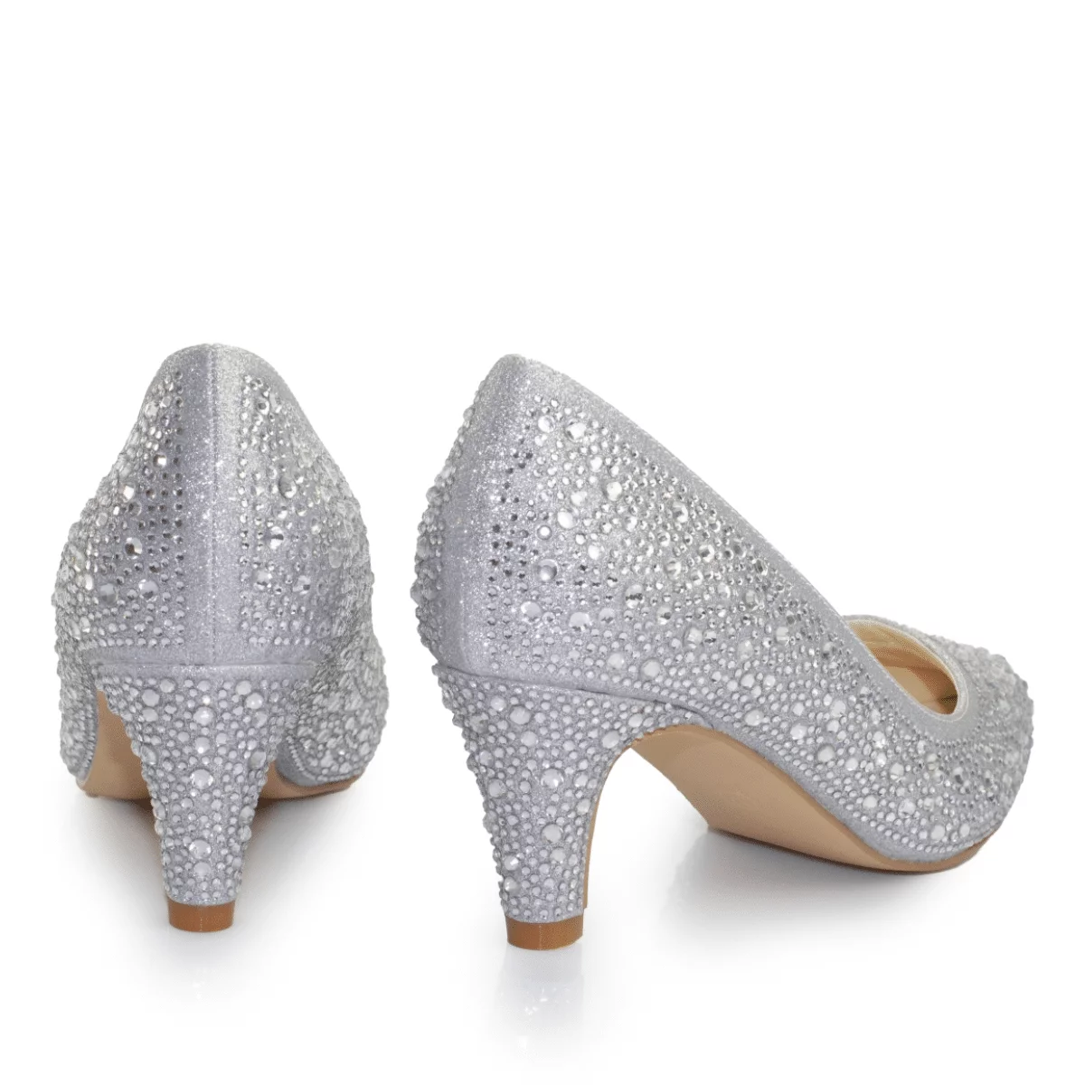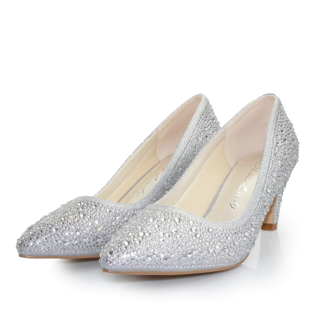 Die eleganten Abendschuhe 925 Silber mit Strass aus der White Lady Kollektion setzen ein Highlight bei deinem Outfit. Die Schuhe sind aus Textil in Farbe Silber gefertigt und mit Strasssteinen verziert. Dank dem 5,5 cm hohen Trichterabsatz, sind diese Abendschuhe besonders bequem beim Laufen und Stehen. Selbst Tanzen wäre keine große Herausforderung, da die Decksohle innen gepolstert ist. Das Modell 925 Silber mit Strass passt für normal weite Füße. Diese klassische Pumps sind für Feiern, Events und Hochzeit wie geschaffen!