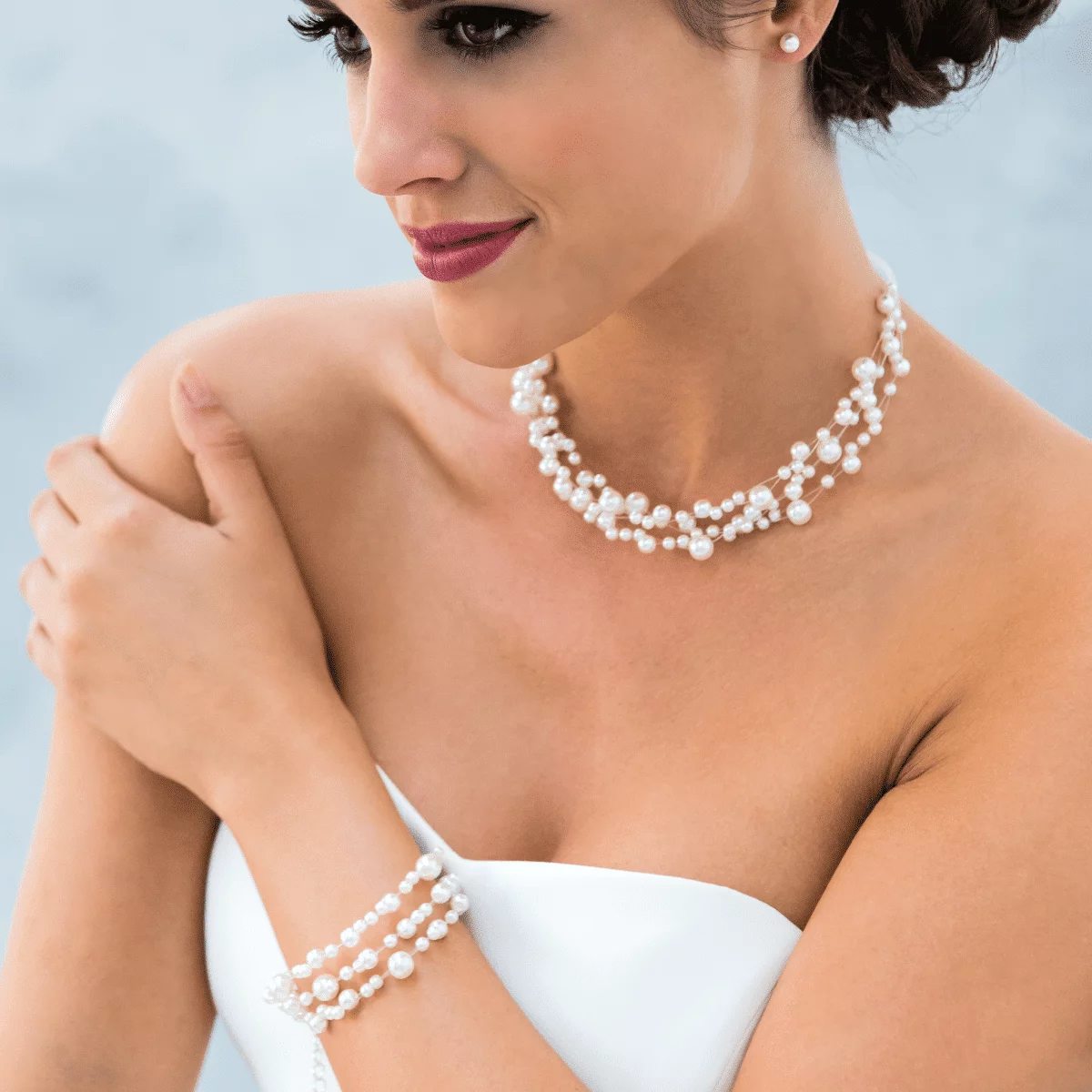 Das hübsche Armband HS-J07L von G. Westerleigh ist mit Perlen verziert, welche in aufwändiger Handarbeit eingearbeitet wurden. Das Armband ist mit Silber bedeckt (nickel- und bleifrei) und daher auch für empfindliche Haut geeignet. Die Länge des Armbands beträgt ca. 18 cm (+2,0 Verlängerung). Damit passt dieses Armband an nahezu jedes Handgelenk und strahlt Klassik und Eleganz aus. Eine gute Ergänzung zum Braut- oder Abendkleid und garantiert ein Blickfang! Passend zu dem Armband HS-J07L empfehlen wir das Schmuckset HS-J07 von G. Westerleigh.