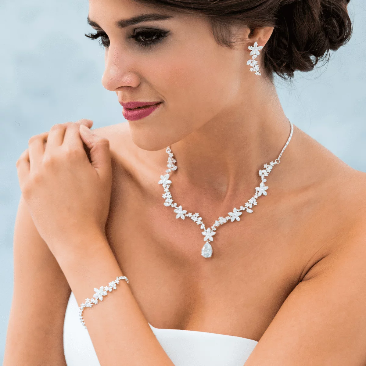 Das wunderschöne Armband NS2-4135L von G. Westerleigh ist mit Cubic Zirconia Kristallen verziert, welche in aufwändiger Handarbeit eingearbeitet wurden. Das Armband ist mit Silber bedeckt (nickel- und bleifrei) und daher auch für empfindliche Haut geeignet. Die Länge des Armbands beträgt ca. 16 cm (+1,0 Verlängerung). Damit passt dieses Armband an nahezu jedes Handgelenk und strahlt Klassik und Eleganz aus. Eine gute Ergänzung zum Braut- oder Abendkleid und garantiert ein Blickfang! Passend zu dem Armband NS2-4135L empfehlen wir das Schmuckset NS2-4135 und den Haarclip K-09747 von G. Westerleigh.