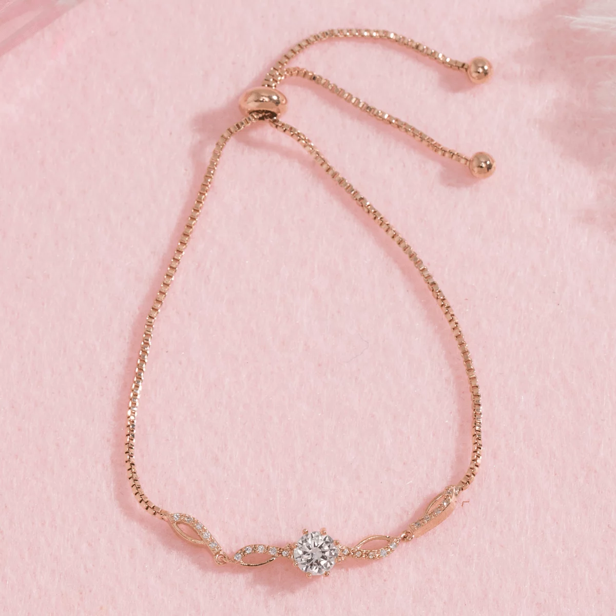 Das zarte Armband WMBR04RG von G. Westerleigh ist mit Cubic Zirconia Kristallen verziert, welche in aufwändiger Handarbeit eingearbeitet wurden. Das Armband ist mit Rosé Gold bedeckt (nickel- und bleifrei) und daher auch für empfindliche Haut geeignet. Die Länge des Armbands beträgt ca. 16 cm . Damit passt dieses Armband an nahezu jedes Handgelenk und strahlt Klassik und Eleganz aus. Eine gute Ergänzung zum Braut- oder Abendkleid und garantiert ein Blickfang!