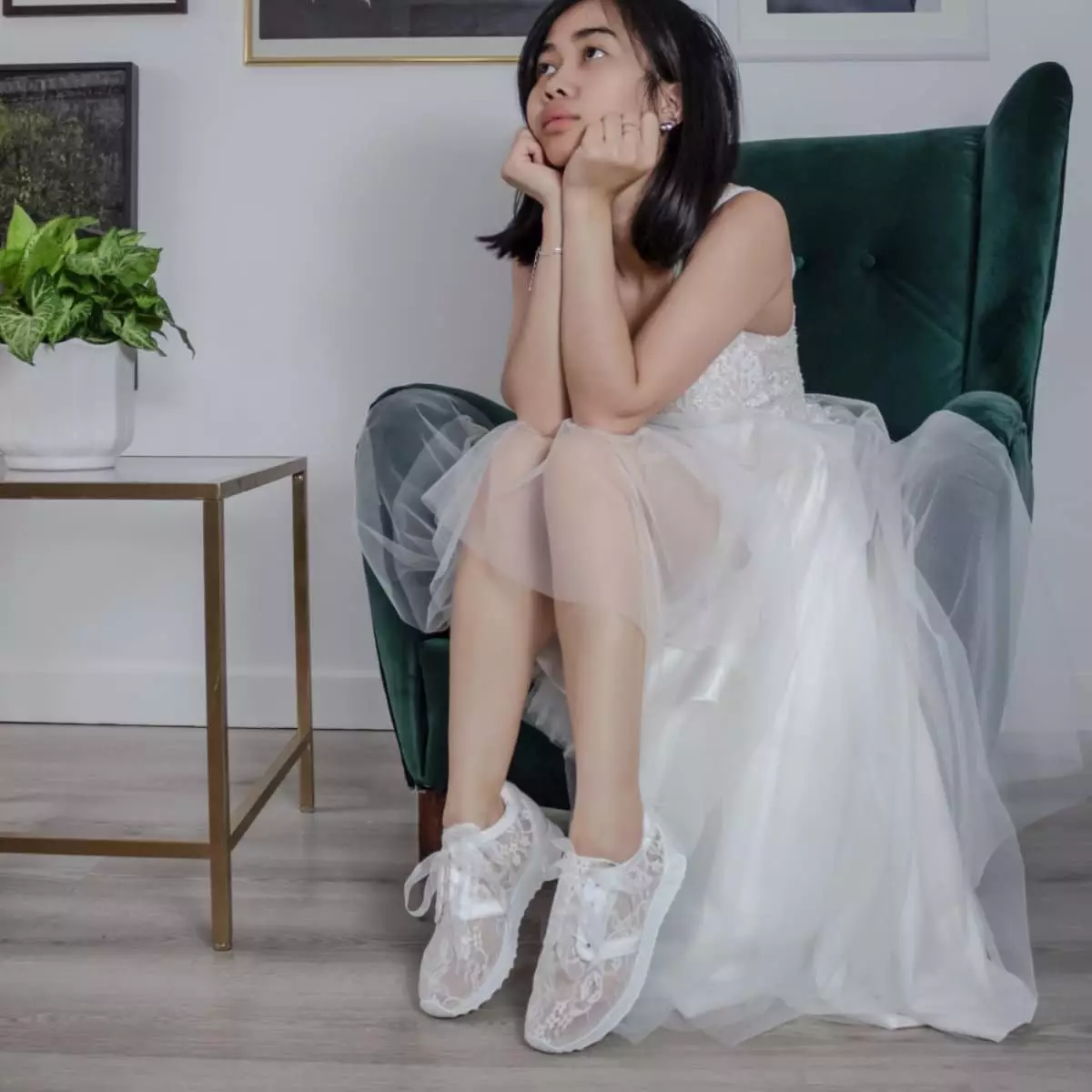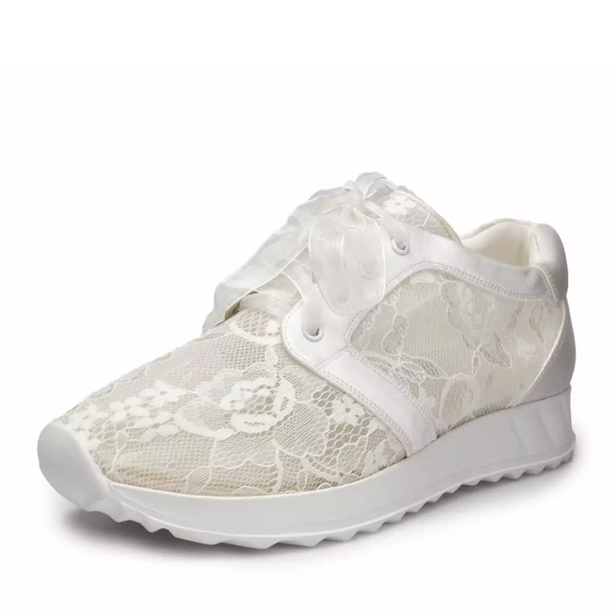 Wunderschöne Braut-Sneaker „928“ aus der Kollektion 2022 von White Lady. Gefertigt aus hochwertigem Satin und Spitze mit floralen Elementen. Die Schuhe „928“ Ivory Spitze passen für normal weite Füße. Diese frechen Sneaker sind besonders bequem und eignen sich als treuer Begleiter für die Hochzeit. Auch als Ersatzpaar für den Hochzeitstanz oder für Outdoor-Aktivitäten geeignet!