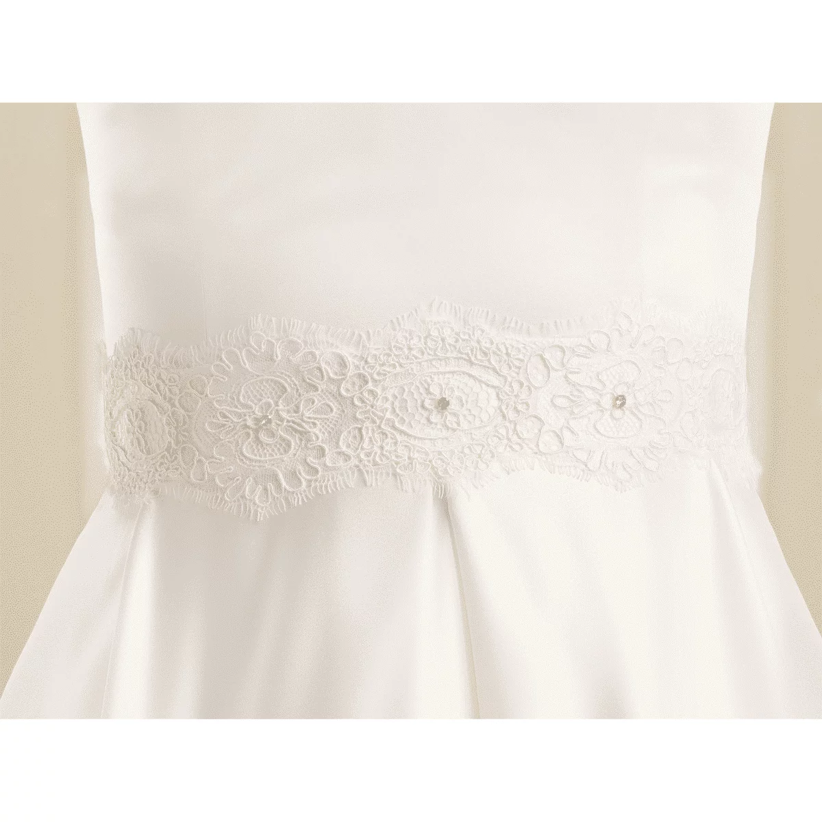 Dieser elegante Brautgürtel aus Satin PA1 von Avalia (Bianco Evento) ist mit Spitze und Swarovski Kristallen verziert. Brautgürtel PA1 hat die Breite von 8 cm. Dank fertiger Schleife muss der Gürtel nicht selber gebunden werden.