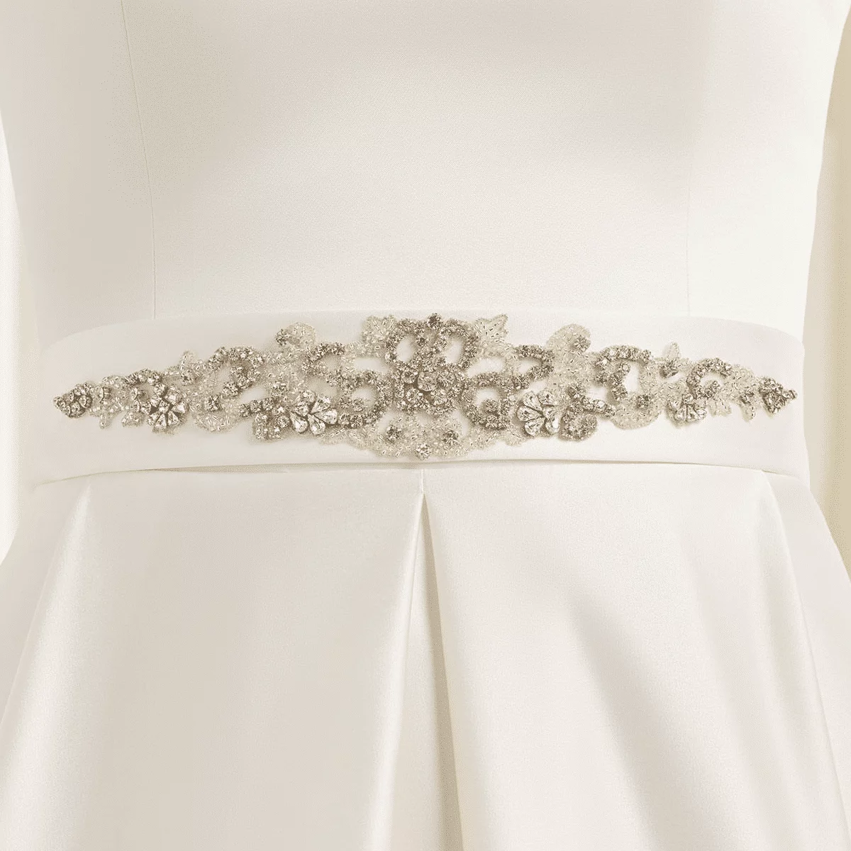 Dieser elegante Brautgürtel aus Satin PA17 von Avalia (Bianco Evento) ist mit Ziersteinbesatz verziert. Brautgürtel PA17 hat die Breite von 4,5 cm. Dank fertiger Schleife muss der Gürtel nicht selber gebunden werden. Der Brautgürtel ist hochwertig verarbeitet und ist ein wunderschönes Accessoire für dein Brautoutfit.