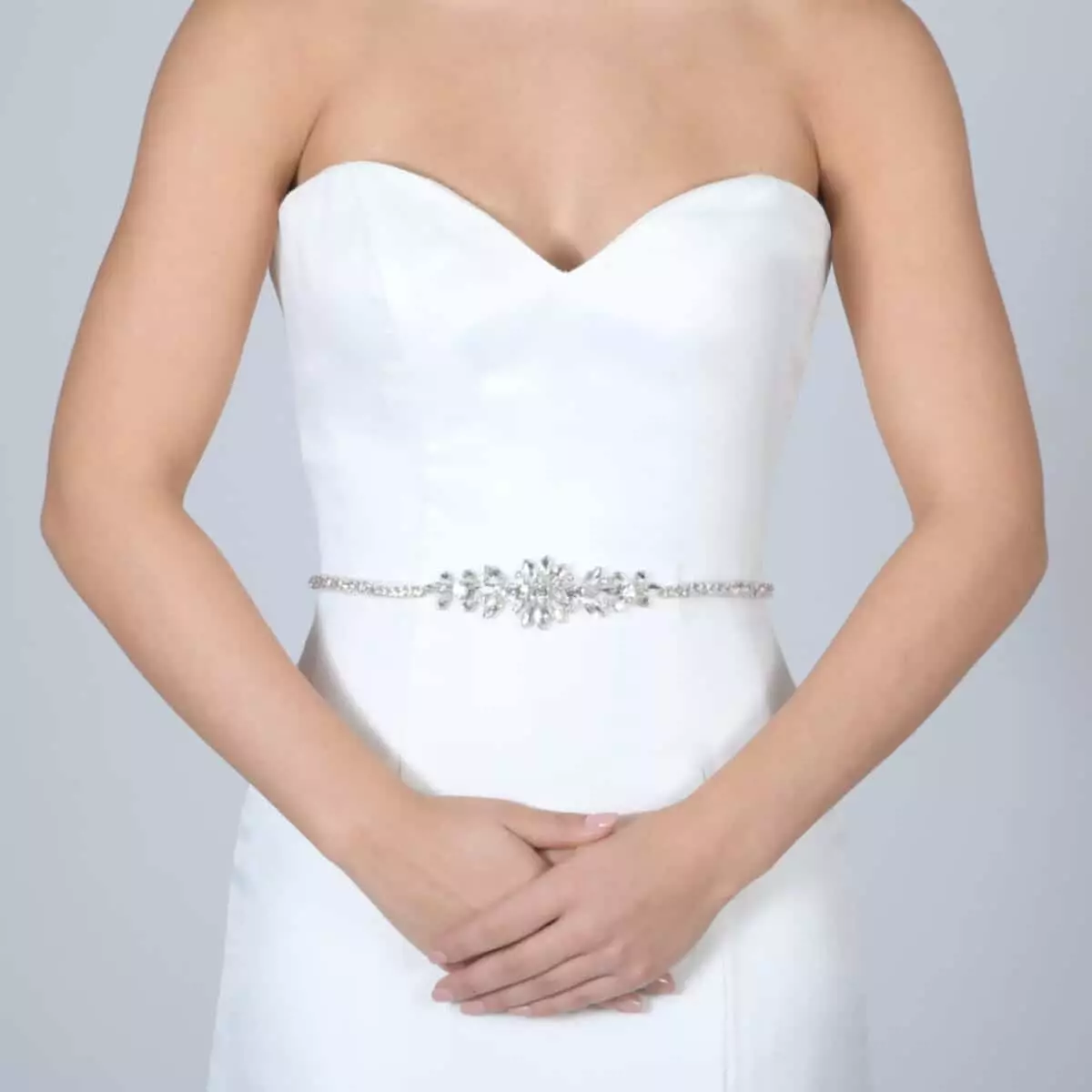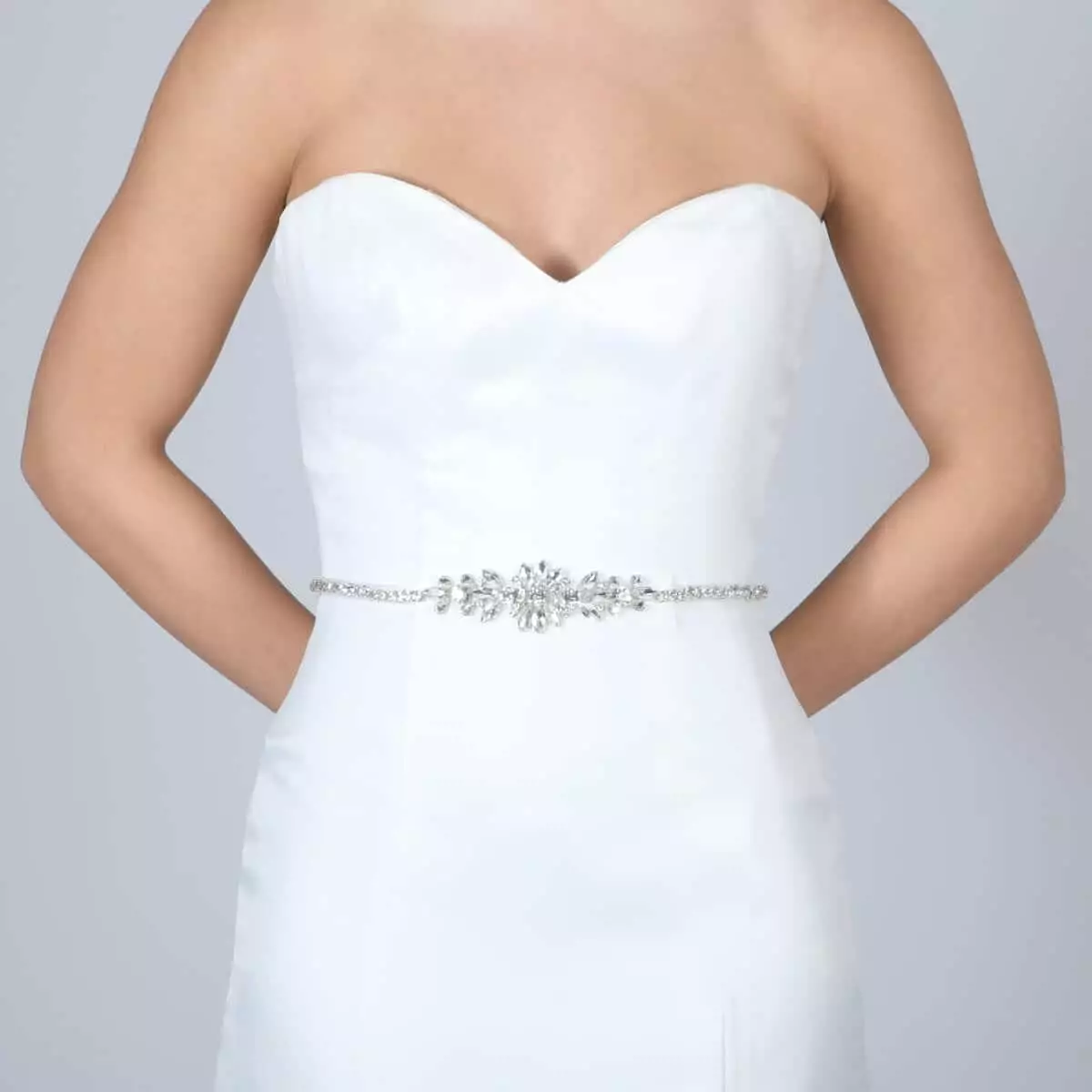 Einzigartig schöner Brautgürtel im klassischen Vintage-Look PBB1040 von The Perfect Bridal Company. Dieser Taillengürtel überzeugt durch ein Vintage-inspiriertes Design mit einer einzelnen Reihe schillernder klarer Kristalle mit einem auffälligen zentralen Kristallblüten-Design. Die Schärpe wurde aus hochwertigem Satin in Farbe Ivory gefertigt und kommt in einer Länge von ca. 2,75 m.