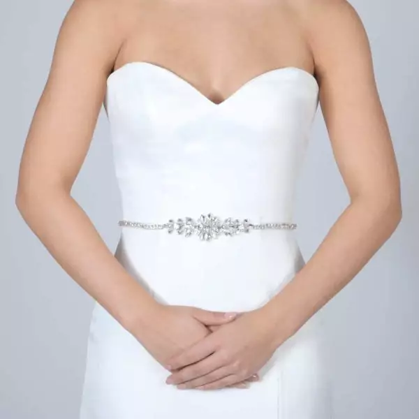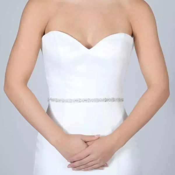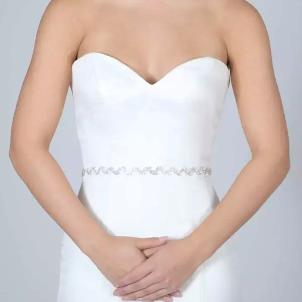 Der elegante Brautgürtel PBB1041 von The Perfect Bridal Company hat ein schmales und zartes Design. Er kommt mit weißen Jadeperlen mit klaren Kristallen und einer Streuung aus klaren facettierten Perlen auf einem elfenbeinfarbenen Satinband. Die Länge der Schärpe beträgt ca. 2,75 m. Dieses einzigartige Accessoire aus der Kollektion 2022 hebt elegant Deine Taille hervor und vervollständigt Dein Brautlook!