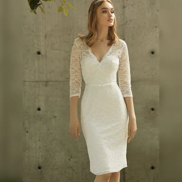 Wunderschönes Brautkleid BN-001 von Bride Now in der klassischen Farbe Ivory (Elfenbeinfarbe). Hergestellt aus hochwertiger Spitze mit geometrischem Muster, Futter mit Stretchanteil. Das Oberteil ist mit elastischem Futter und Tüll gefüttert, was für zusätzlichen Komfort und ein einfaches An- und Ausziehen sorgt. Das Brautkleid BN-001 ist besonders leicht und zart und sieht einfach bezaubernd aus. Eine ideale Wahl für die Braut, die nach einem klassischen und zugleich besonders stylischen Kleid sucht.