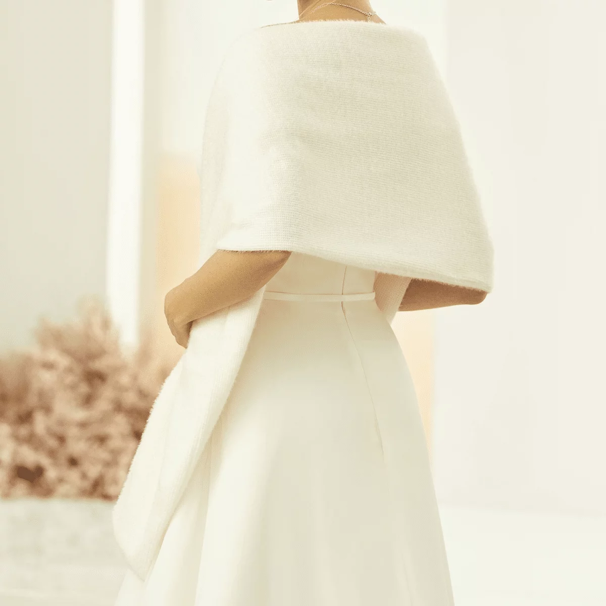 Hübscher Brautschal E318 von Avalia (Bianco Evento) mit Kashmir-Effekt in Farbe Ivory. Der Schal E318 kommt in einer Universalgröße und ist eine ideale Ergänzung zum Brautkleid in Farbe Ivory oder Weiß. Geeignet für eine Hochzeitsfeier draußen an kalten Tagen im Herbst und Winter oder an kühlen Frühlingstagen, damit die Braut sich wohl fühlt. Das Material ist eine Alternative zur Wolle und ideal für Allergiker und empfindliche Haut. Hohe Qualität, sorgfältig entworfen und produziert in der Europäischen Union.