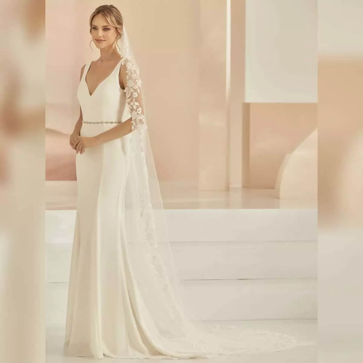 Der charmante Brautschleier S408 von Avalia (Bianco Evento) ist wie gemacht für Dein Brautkleid! Er kommt mit Spitzenkante daher und besteht aus hochwertigem Soft-Tüll und Spitze in der Farbe Ivory. Dieses einlagige Modell S408 fällt mit einer Länge von 250 cm etwas länger aus und schleppt elegant am Boden. Der eingearbeitete Haarkamm kann bequem in jede Kopffrisur gesteckt werden. Dieses Accessoire wurde entworfen und produziert in der Europäischen Union.