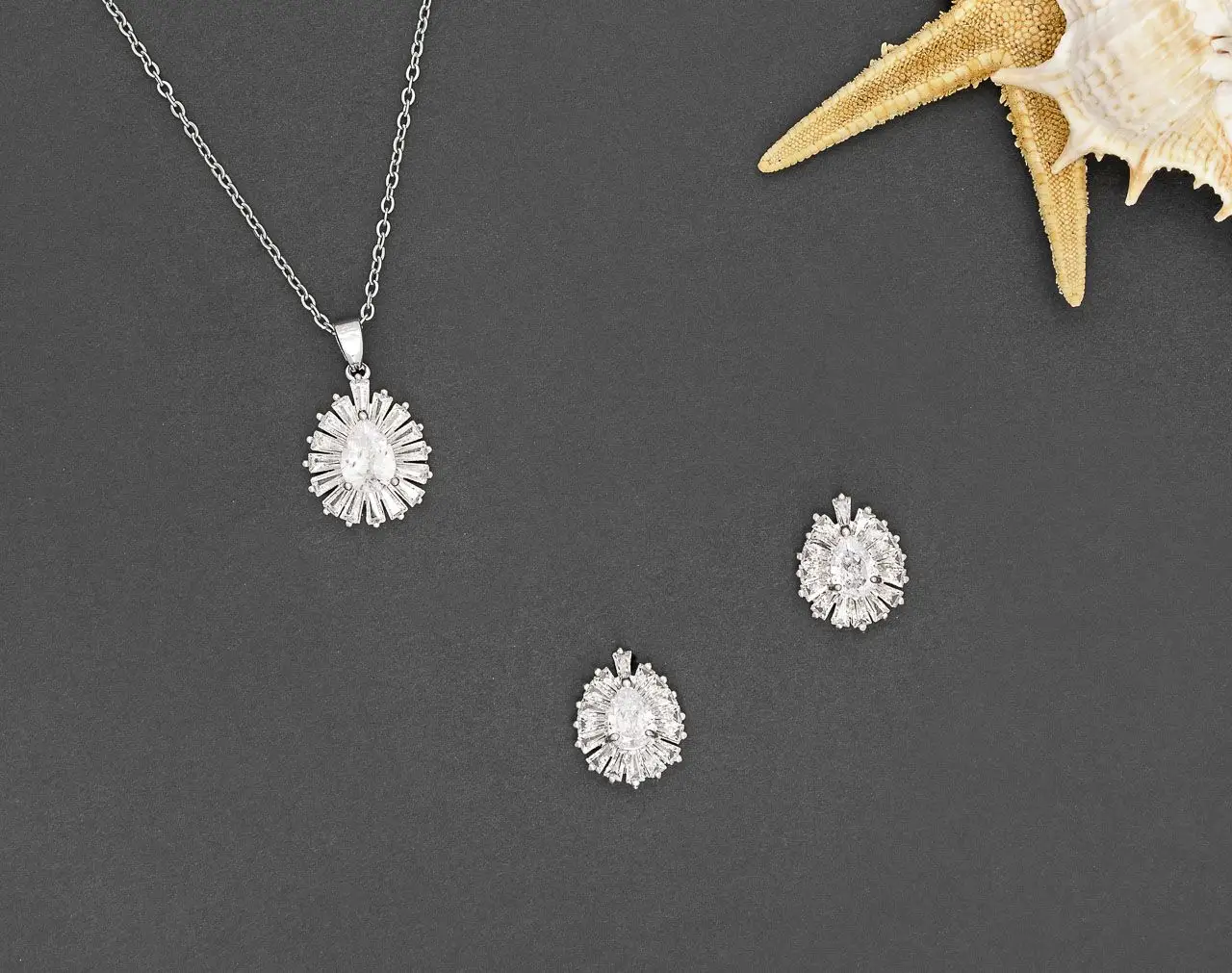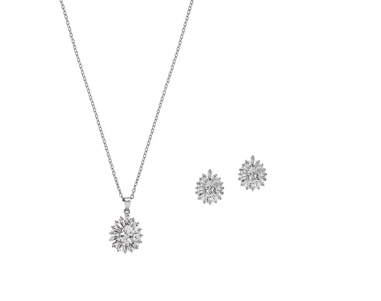 Dieses wunderschöne Brautschmuckset besteht aus atemberaubenden Zirkonia-Kristallen. Das Schmuckset ist rhodiniert und die Länge der Halskette ist verstellbar.