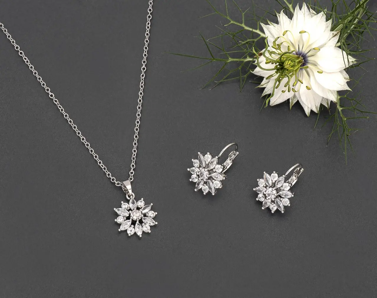 Dieses wunderschöne Brautschmuckset besteht aus atemberaubenden Zirkonia-Kristallen. Das Schmuckset ist rhodiniert. Die Länge der Halskette kann angepasst werden.