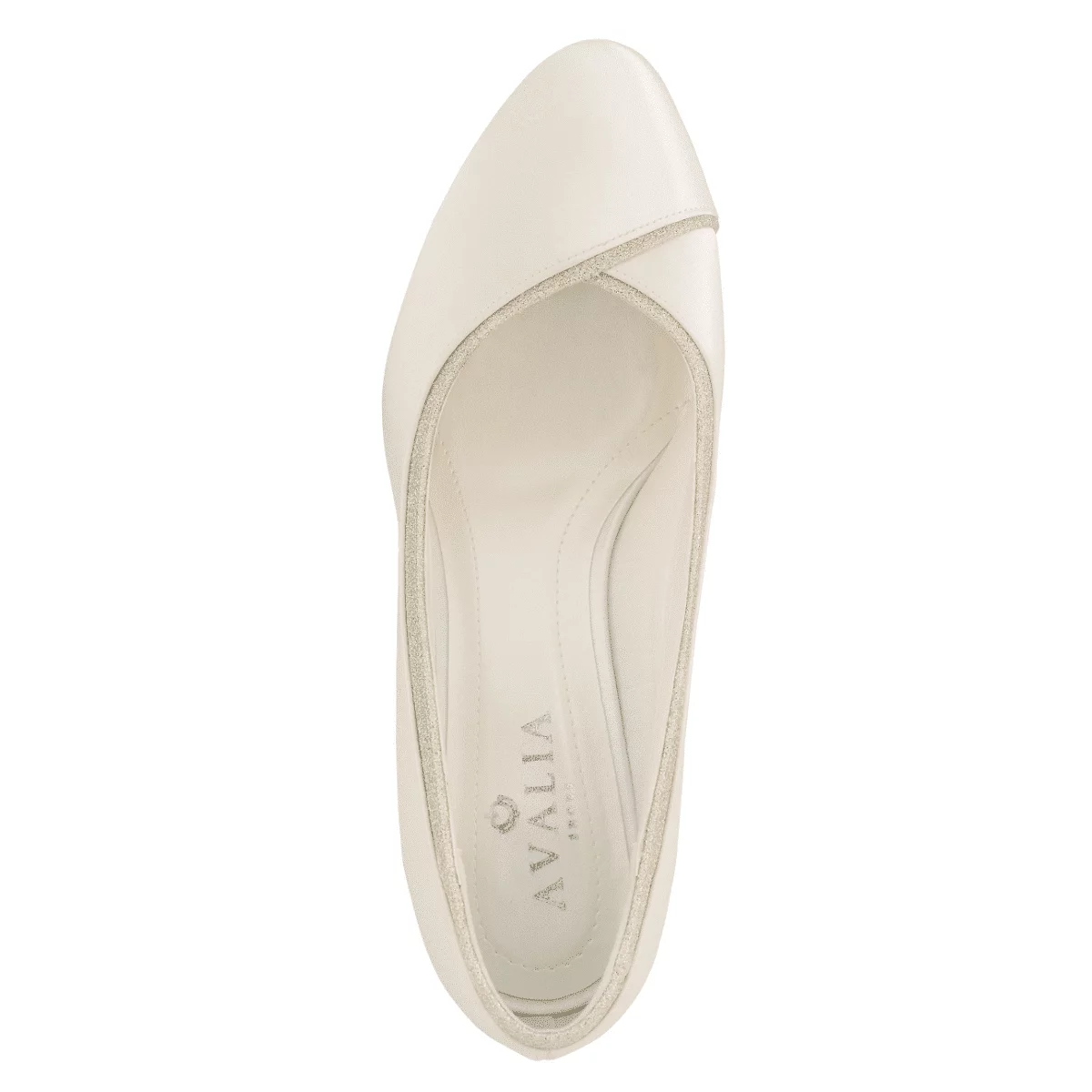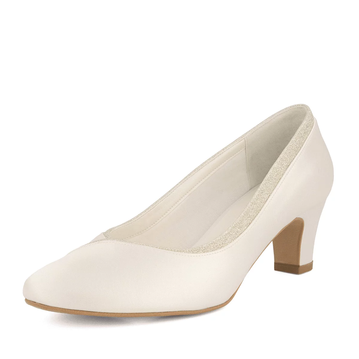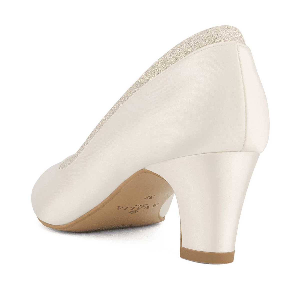 Die Brautschuhe Ebba von Avalia in der klassischen Farbe Ivory bestehen aus hochwertigem Satin mit festem Blockabsatz. Dank dem weichen Innenfutter aus Schaumstoff sind die Brautschuhe Ebba besonders bequem und bieten maximalen Tragekomfort. Die Absatzhöhe von 6 cm sorgt für optisch gestreckte Beine und macht diese Brautschuhe zum Highlight jeder Hochzeitsfeier. Die Hochzeitsschuhe Ebba mit Glitzern aus Satin mit festem Blockabsatz sind sehr bequem und sitzen perfekt auf jedem Fuß. Die Farbe Ivory ist wunderschön und passt zum weißen oder elfenbeinfarbigen Brautkleid. Da es sich um Brautschuhe mit einem festem Blockabsatz handelt, spielt die Kleidlänge übrigens keine entscheidende Rolle. Diese hochwertigen Brautschuhe Ebba Ivory von dem Hersteller Avalia (Bianco Evento) wurden sorgfältig entworfen und hergestellt in der Europäischen Union.