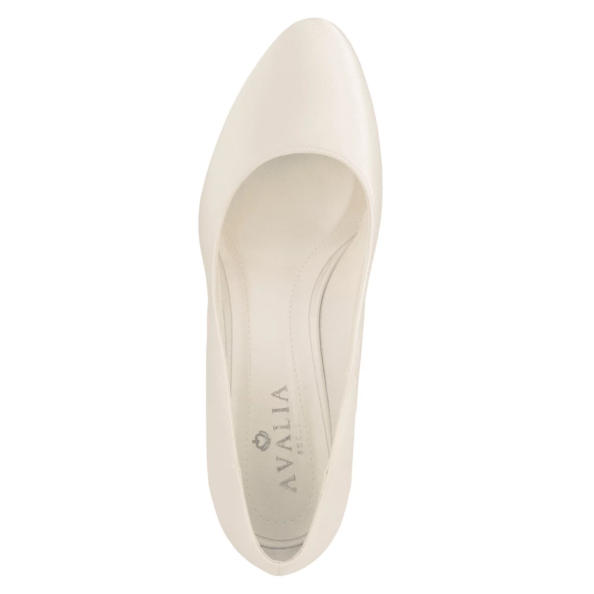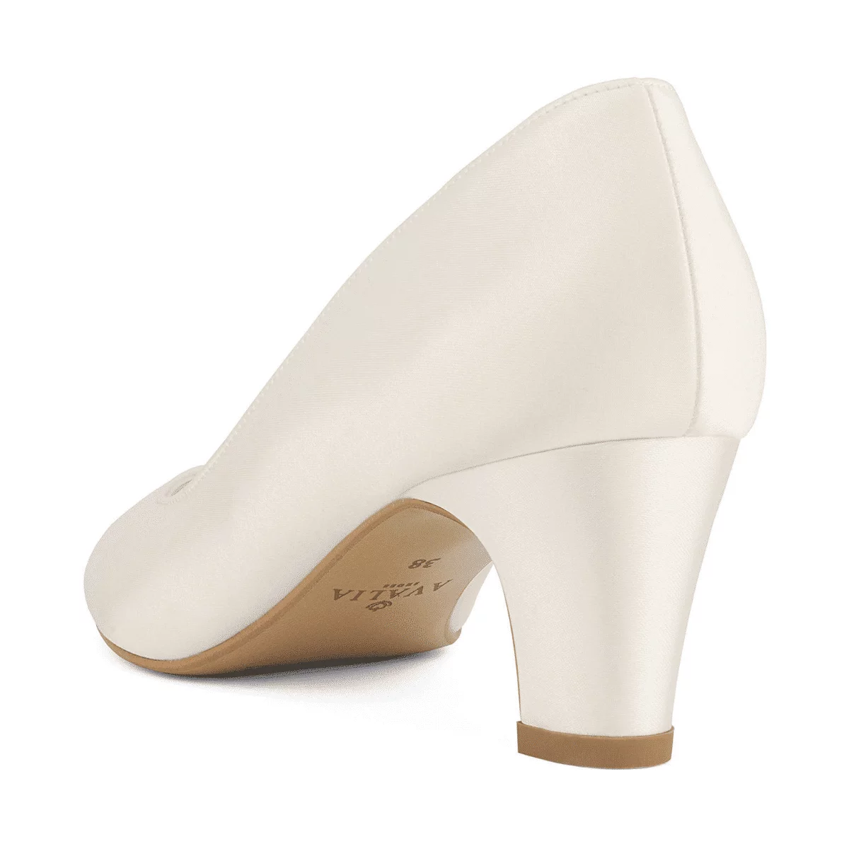Die Brautschuhe Grace von Avalia in der klassischen Farbe Ivory bestehen aus hochwertigem Satin mit einem breiten Absatz. Dank dem weichen Innenfutter aus Schaumstoff sind die Brautschuhe Grace besonders bequem und bieten maximalen Tragekomfort. Die Absatzhöhe von nur 6 cm sorgt für optisch gestreckte Beine und macht diese Brautschuhe zum Highlight jeder Hochzeitsfeier. Die Farbe Ivory ist wunderschön und passt zum weißen oder elfenbeinfarbigen Brautkleid. Diese Brautschuhe sehen zu einem langen Brautkleid besonders schön aus, können auch zu manchen kurzen Brautkleidern getragen werden. Diese hochwertigen Brautschuhe Grace Ivory von dem Hersteller Avalia (Bianco Evento) wurden sorgfältig entworfen und hergestellt in der Europäischen Union.