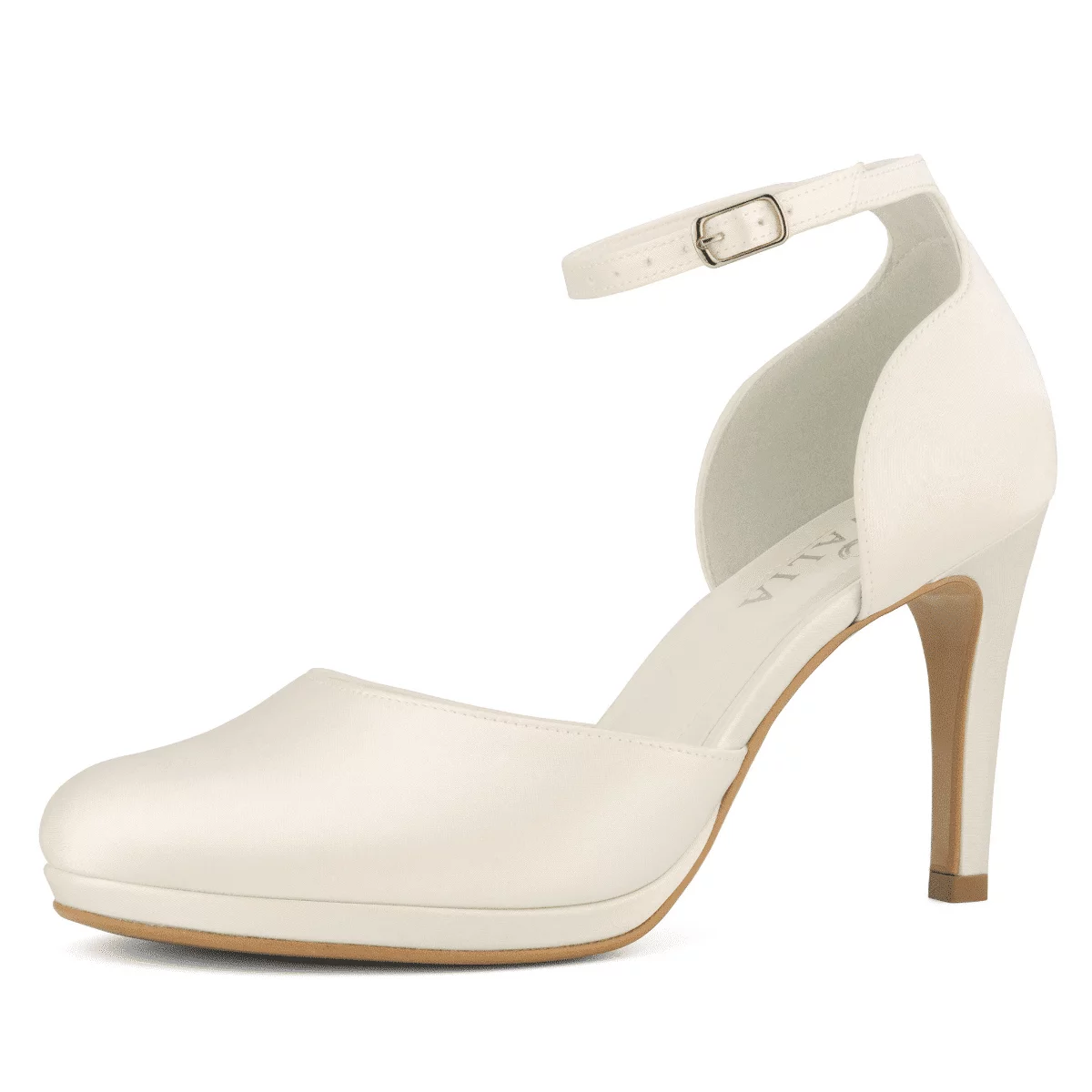 Die Brautschuhe Ivett von Avalia in der klassischen Farbe Ivory bestehen aus hochwertigem Satin mit einem breiten Absatz. Dank dem weichen Innenfutter aus Schaumstoff sind die Brautschuhe Ivett besonders bequem und bieten maximalen Tragekomfort. Die Absatzhöhe von 9 cm und Plateuhöhe von 1 cm sorgt für optisch gestreckte Beine und macht diese Brautschuhe zum Highlight jeder Hochzeitsfeier. Trotz dem hohen Absatz sind die Hochzeitsschuhe Ivett High-Heels aus Satin sehr bequem und haben einen verstellbaren Knöchelriemen, damit diese an nahezu jedem Fuß perfekt sitzen. Die Farbe Ivory ist wunderschön und passt zum weißen oder elfenbeinfarbigen Brautkleid. Da es sich um Brautschuhe mit einem hohen Absatz handelt, spielt die Kleidlänge übrigens keine entscheidende Rolle. Diese hochwertigen Brautschuhe Ivett Ivory von dem Hersteller Avalia (Bianco Evento) wurden sorgfältig entworfen und hergestellt in der Europäischen Union.
