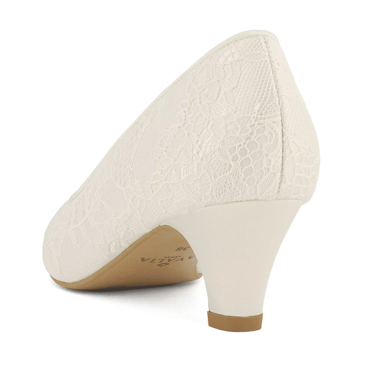 Die Brautschuhe Lara von Avalia in der klassischen Farbe Ivory bestehen aus hochwertigem Satin und Spitze mit einem breiten Absatz. Dank dem weichen Innenfutter aus Schaumstoff sind die Brautschuhe Lara besonders bequem und bieten maximalen Tragekomfort. Die Absatzhöhe von nur 5,5 cm sorgt für optisch gestreckte Beine und macht diese Brautschuhe zum Highlight jeder Hochzeitsfeier. Trotz dem Absatz sind die Hochzeitsschuhe Lara aus Satin mit breitem Absatz sehr bequem. Die Farbe Ivory ist wunderschön und passt zum weißen oder elfenbeinfarbigen Brautkleid. Diese Brautschuhe sehen zu einem langen Brautkleid besonders schön aus, können auch zu manchen kurzen Brautkleidern getragen werden. Diese hochwertigen Brautschuhe Lara Ivory von dem Hersteller Avalia (Bianco Evento) wurden sorgfältig entworfen und hergestellt in der Europäischen Union.