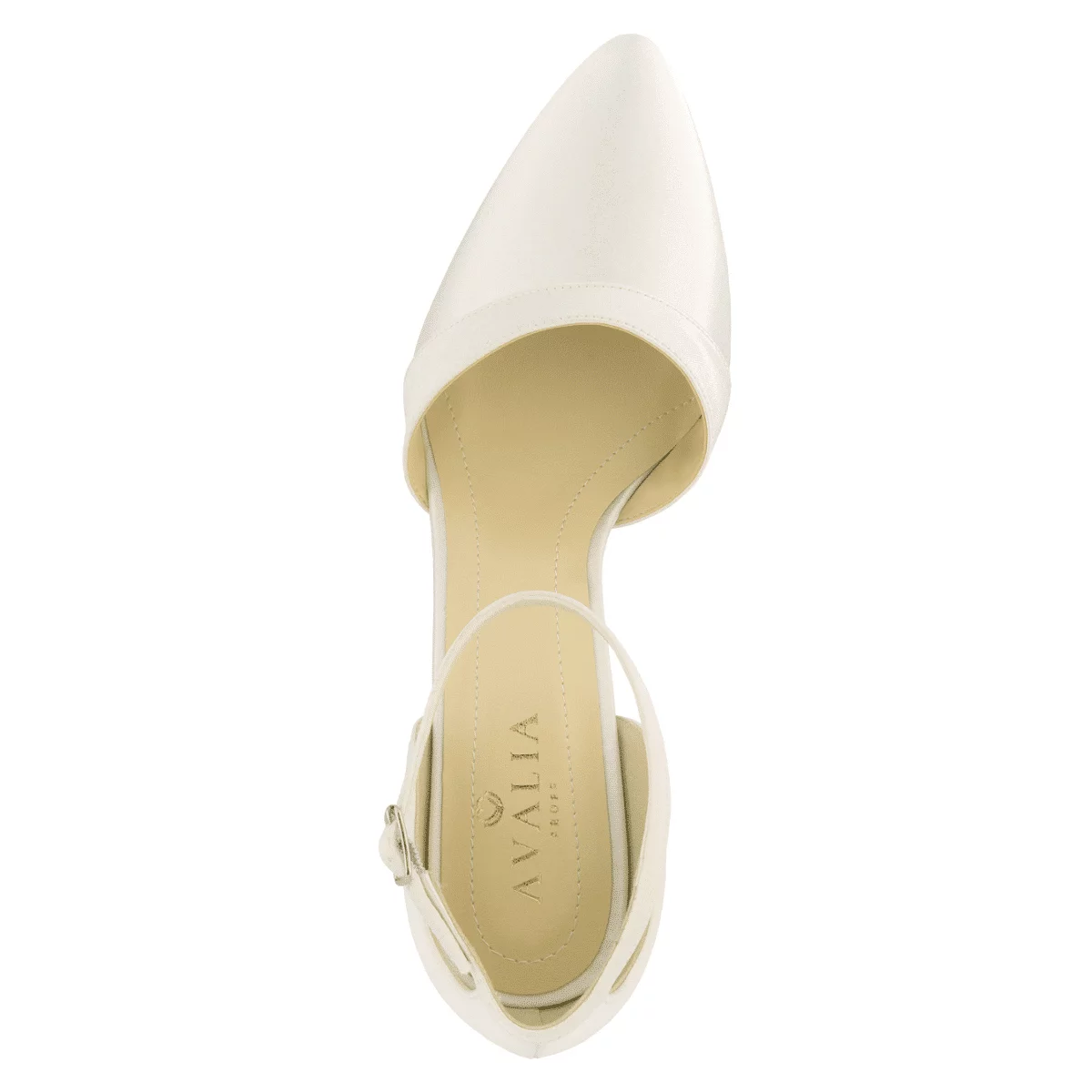 Die Brautschuhe Mira von Avalia in der klassischen Farbe Ivory bestehen aus hochwertigem Satin mit einem breiten Absatz. Dank dem weichen Innenfutter aus Schaumstoff sind die Brautschuhe Mira besonders bequem und bieten maximalen Tragekomfort. Die Absatzhöhe von nur 7 cm sorgt für optisch gestreckte Beine und macht diese Brautschuhe zum Highlight jeder Hochzeitsfeier. Trotz dem Absatz sind die Hochzeitsschuhe Mira aus Satin mit breitem Absatz sehr bequem und haben einen verstellbaren Knöchelriemen, damit diese an nahezu jedem Fuß perfekt sitzen. Die Farbe Ivory ist wunderschön und passt zum weißen oder elfenbeinfarbigen Brautkleid. Diese Brautschuhe sehen zu einem langen Brautkleid besonders schön aus, können auch zu manchen kurzen Brautkleidern getragen werden. Diese hochwertigen Brautschuhe Mira Ivory von dem Hersteller Avalia (Bianco Evento) wurden sorgfältig entworfen und hergestellt in der Europäischen Union.