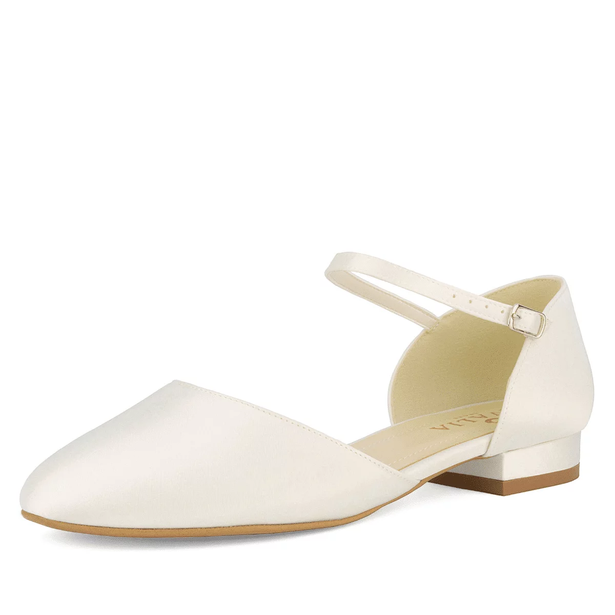Die Brautschuhe Sissi von Avalia in der klassischen Farbe Ivory bestehen aus hochwertigem Satin. Dank dem weichen Innenfutter aus Schaumstoff sind die Brautschuhe Sissi besonders bequem und bieten maximalen Tragekomfort. Der 2 cm flache Absatz sorgt dafür, dass diese Schuhe bequem über die ganze Hochzeit hinaus getragen werden können. Mit einem flachen Absatz sind die Hochzeitsschuhe Sissi aus Satin besonders bequem und stylisch zugleich. Die Brautschuhe haben einen verstellbaren Knöchelriemen, damit diese an nahezu jeden Fuß perfekt passen. Die Farbe Ivory ist wunderschön und passt zum weißen oder elfenbeinfarbigen Brautkleid. Brautschuhe mit einem flachen Absatz sind eher für lange Brautkleider geeignet, können aber auch zu bestimmten kurzen Brautkleidern gut passen. Diese hochwertigen Brautschuhe Sissi Ivory von dem Hersteller Avalia (Bianco Evento) wurden sorgfältig entworfen und hergestellt in Europa.