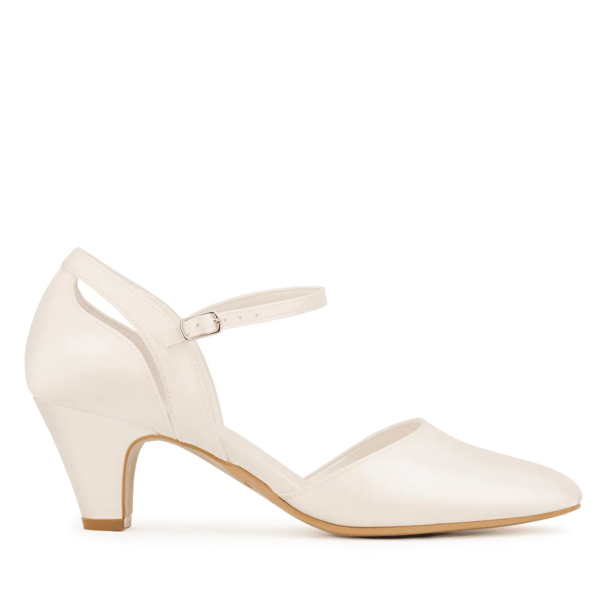 Die Brautschuhe Star von Avalia in der klassischen Farbe Ivory bestehen aus hochwertigem Satin mit einem breiten Absatz und haben eine dekorative Ferse. Dank dem weichen Innenfutter aus Schaumstoff sind die Brautschuhe Star besonders bequem und bieten maximalen Tragekomfort. Die Absatzhöhe von nur 6 cm sorgt für optisch gestreckte Beine und macht diese Brautschuhe zum Highlight jeder Hochzeitsfeier. Trotz dem Absatz sind die Hochzeitsschuhe Star aus Satin mit stylischem Trichterabsatz sehr bequem und haben einen verstellbaren Knöchelriemen, damit diese an nahezu jedem Fuß perfekt sitzen. Die Farbe Ivory ist wunderschön und passt zum weißen oder elfenbeinfarbigen Brautkleid. Diese Brautschuhe sehen zu einem langen Brautkleid besonders schön aus, können auch zu manchen kurzen Brautkleidern getragen werden. Diese hochwertigen Brautschuhe Star Ivory von dem Hersteller Avalia (Bianco Evento) wurden sorgfältig entworfen und hergestellt in der Europäischen Union.