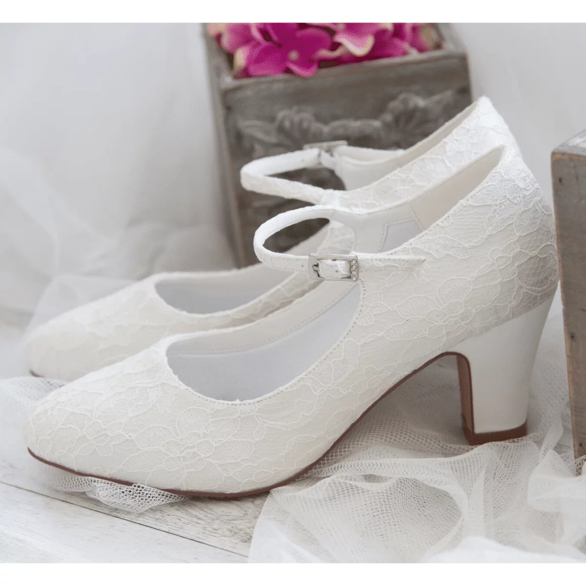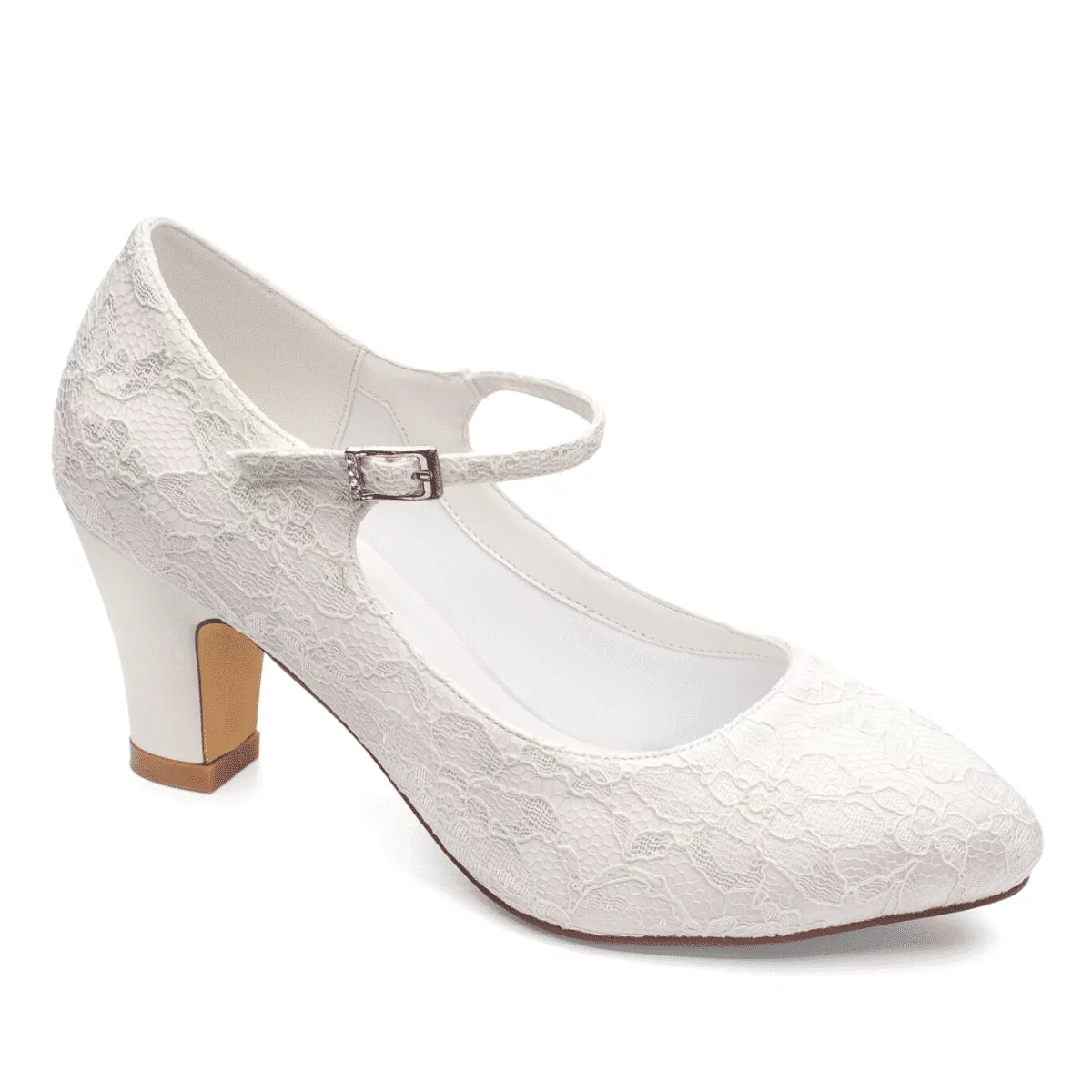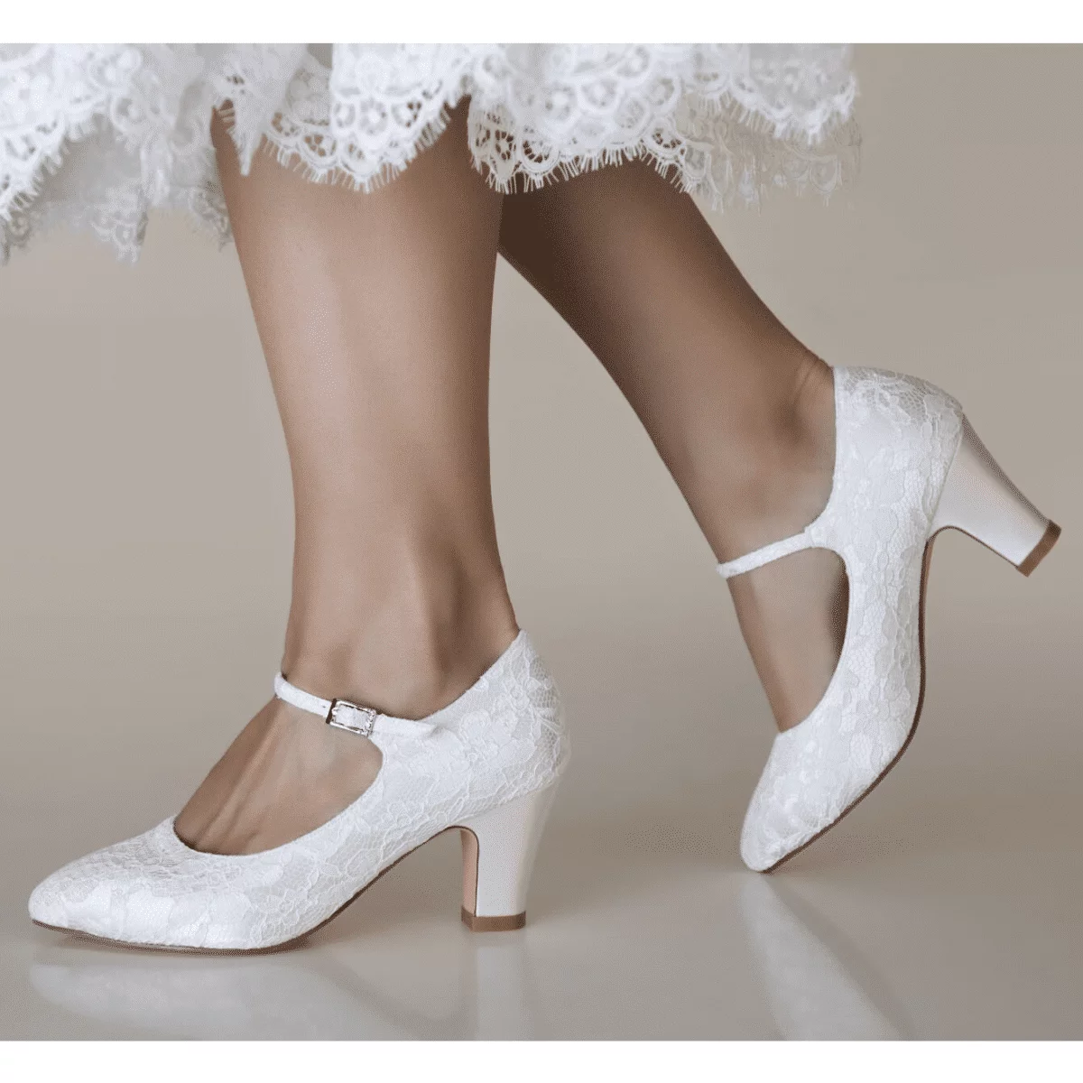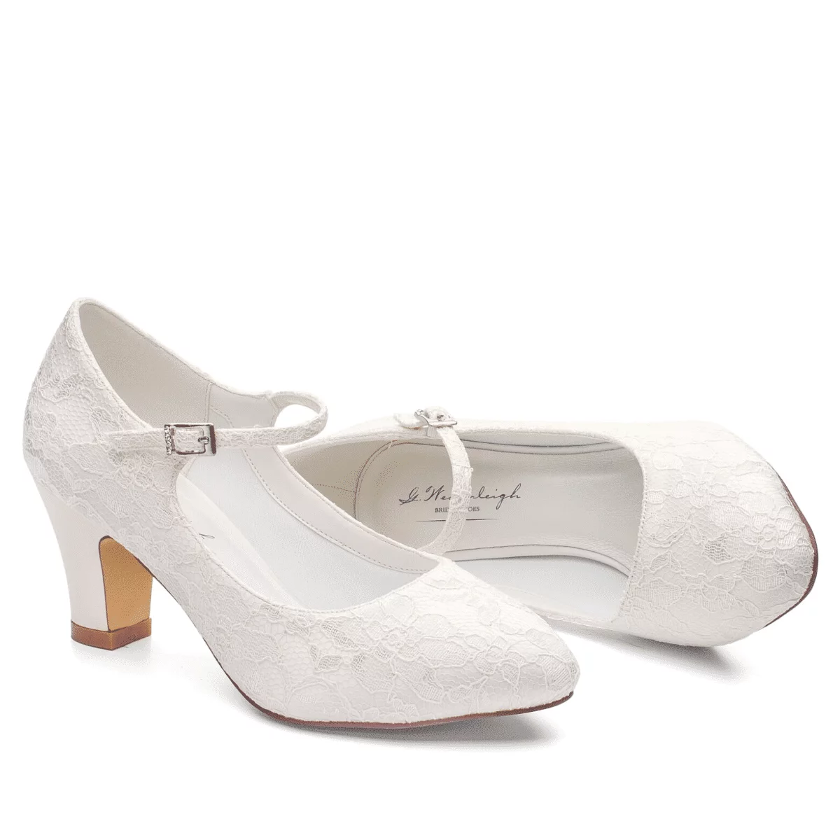 Die Innensohle besteht aus hochwertigem Leder und kommt mit einer weichen Gel-Polsterung für eine ideale Passform. Dadurch kann die Braut mit diesen Schuhen bequem laufen und stehen. Der hohe und stabile Blockabsatz von 7 cm sorgt dafür, dass die Brautschuhe Agnes von G. Westerleigh sehr bequem zu tragen sind. Die Brautschuhe Agnes sind aus hochwertigem Satin hergestellt und mit feiner Spitze überzogen. Eine ideale Wahl für jede Braut oder Brautjungfern, die im Mittelpunkt der Feier stehen möchte.