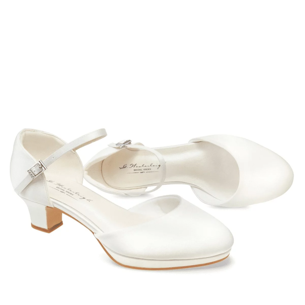 Die hübschen Brautschuhe Becca von G. Westerleigh sind aus hochwertigem Satin in der klassischen Farbe Ivory gefertigt. Die Farbe der Schuhe eignet sich ideal zu einem Brautkleid in der selben Farbe Ivory (Elfenbeinfarbe) oder Weiß. Die Länge des Brautkleids spielt bei diesem Modell keine entscheidende Rolle. Die Brautschuhe Becca können sowohl zu einem langen wie auch zu einem kurzen Brautkleid getragen werden.