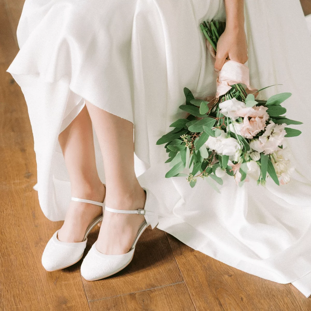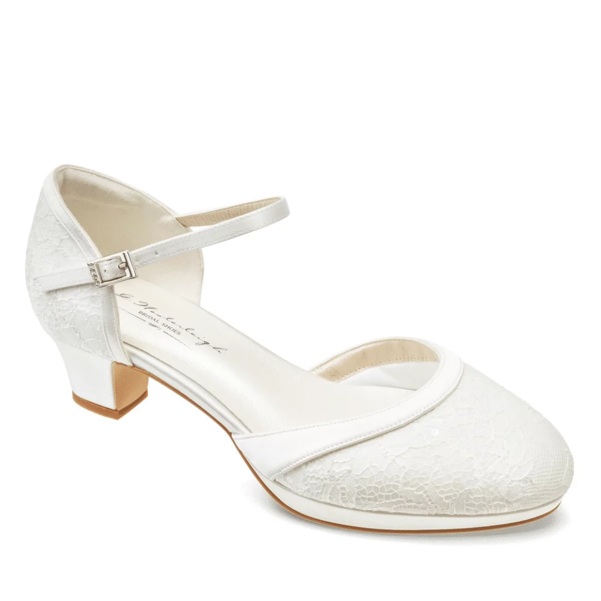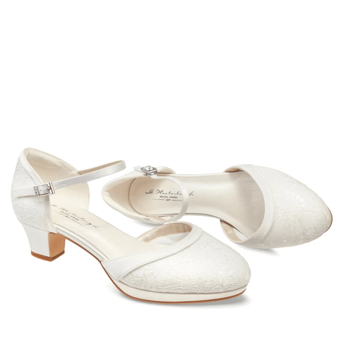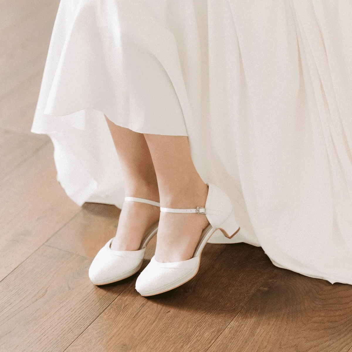 Die Innensohle besteht aus hochwertigem Leder und kommt mit einer weichen Gel-Polsterung für eine ideale Passform. Dadurch kann die Braut mit diesen Schuhen bequem laufen und stehen. Der niedrige Absatz von nur 4 cm sorgt dafür, dass die Brautschuhe Berta von G. Westerleigh sehr bequem zu tragen sind. Dadurch sind diese Schuhe auch als zweites Ersatzpaar gut geeignet. Eine ideale Wahl für jede Braut oder Brautjungfern, die im Mittelpunkt der Feier stehen möchte. Diese stylischen Hochzeits-Ballerinas haben einen nahezu flachen Absatz und sind sehr komfortabel zu tragen. Die Schuhe haben ein klassisches Design und sind mit wunderschöner Spitze überzogen.