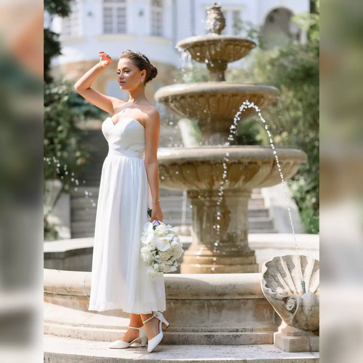 Passend zu diesem Modell empfehlen wir ein Brautkleid in Farbe Ivory sowie weitere Accessoires und Schmuck aus unserem Onlineshop.