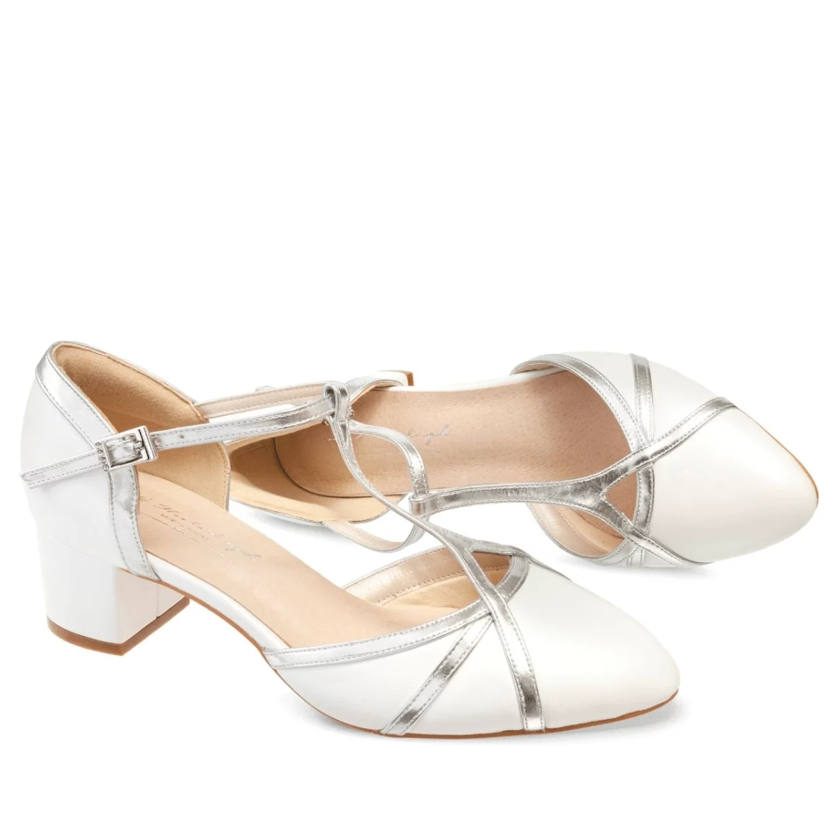 Die Innensohle besteht aus hochwertigem Leder und kommt mit einer weichen Gel-Polsterung für eine ideale Passform. Das Außenmaterial ist hochwertiges Leder mit silberfarbenen Riemchen für einen modischen und eleganten Look. Mit diesen Schuhen kann die Braut bequem laufen und stehen. Der niedrige Absatz von nur 4,5 cm sorgt dafür, dass die Brautschuhe Doris von G. Westerleigh sehr bequem zu tragen sind. Dadurch sind diese Schuhe auch als zweites Ersatzpaar gut geeignet. Eine ideale Wahl für jede Braut oder Brautjungfern, die im Mittelpunkt der Feier stehen möchte. Diese stylischen Hochzeitsschuhe haben einen nahezu flachen Absatz und sind sehr komfortabel zu tragen. Der Riemen in Farbe Silber verleiht diesen Schuhen einen Hauch Eleganz und ist ein Eyecatcher.