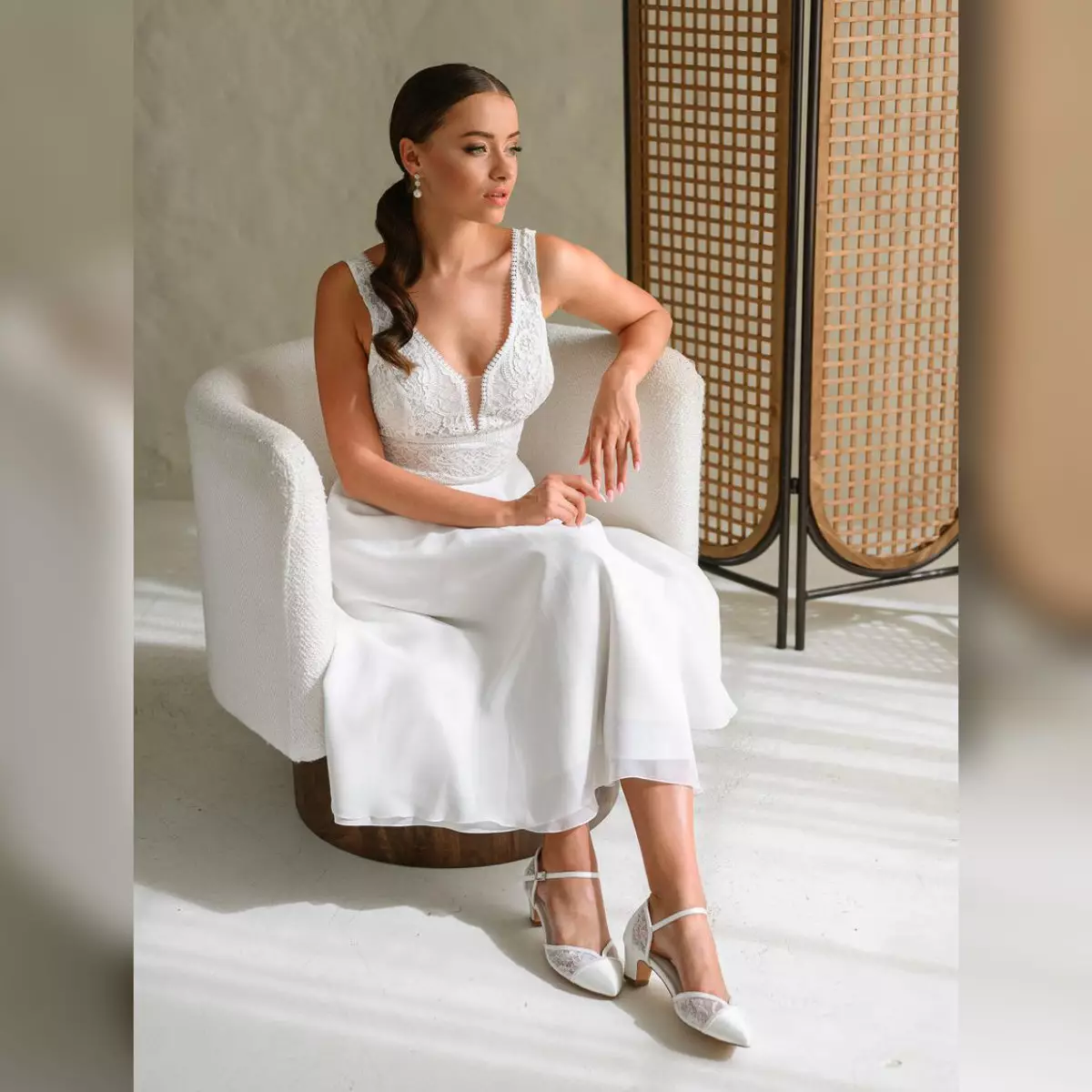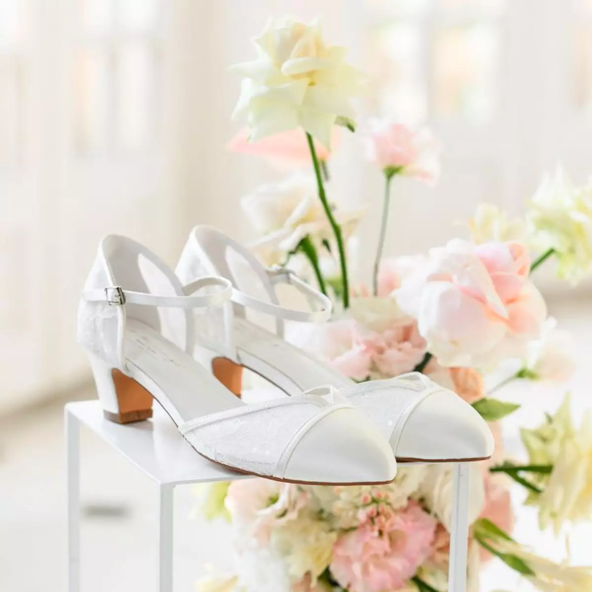 Die Brautschuhe Hailey von G. Westerleigh kommen in einem modernen und eleganten Stil. In Handarbeit gefertigt aus hochwertigem Satin in Farbe Ivory sowie zarter Spitze mit floralen Motiven und Pailletten. Die weiche Gel-Polsterung und die Lederinnensohle sorgen für ein angenehmes Tragegefühl und eine ideale Passform. Das Modell Hailey aus der Kollektion 2023 ist die ideale Wahl für Brautjungfern und Bräute, die auf der Suche nach einzigartigen Hochzeitsschuhen mit Spitzebezug und Strass sind. Der stabile Blockabsatz von 5 cm sorgt dafür, dass die Brautschuhe Hailey von G. Westerleigh sehr bequem zu tragen sind.