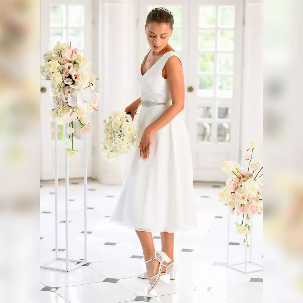 Passend zu diesem Modell empfehlen wir ein Brautkleid in Farbe Ivory sowie weitere Accessoires und Schmuck aus unserem Onlineshop.