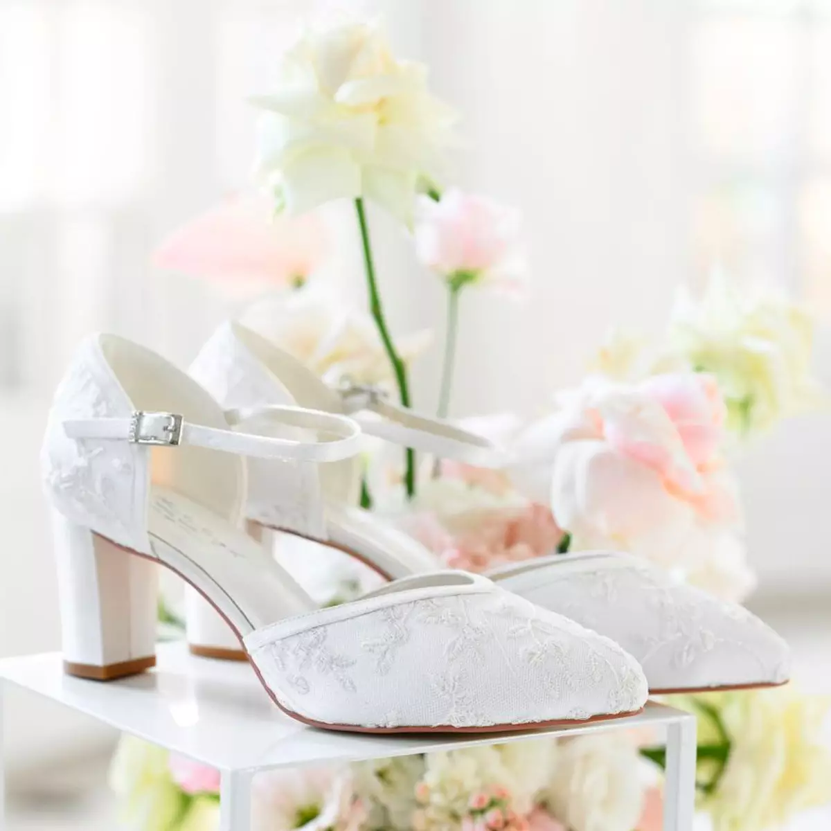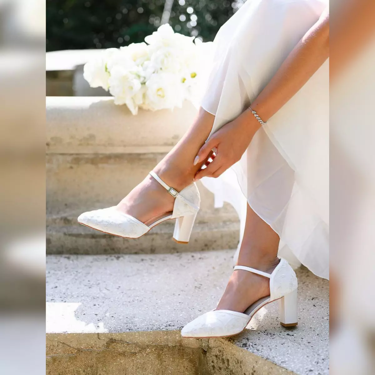 Die Brautschuhe Indira von G. Westerleigh kommen in einem trendigen Design mit einem Hauch Eleganz. In Handarbeit gefertigt aus hochwertigem Satin mit wunderschönem Spitzenbezug in Farbe Ivory (Elfenbein). Die weiche Gel-Polsterung und die Lederinnensohle sorgen für ein angenehmes Tragegefühl und ideale Passform. Das Modell Indira aus der Kollektion 2023 ist von dem Bestseller-Modell Miriam von G. Westerleigh inspiriert und ist unsere Empfehlung für Brautjungfern und Bräute, die auf der Suche nach exklusiven Hochzeitsschuhen mit Spitzenbezug sind. Der halbhohe und stabile Blockabsatz von 7 cm sorgt dafür, dass die Brautschuhe Indira sehr bequem zu tragen sind. Der verstellbare Riemen sorgt für zusätzliche Stabilität und maximalen Komfort.