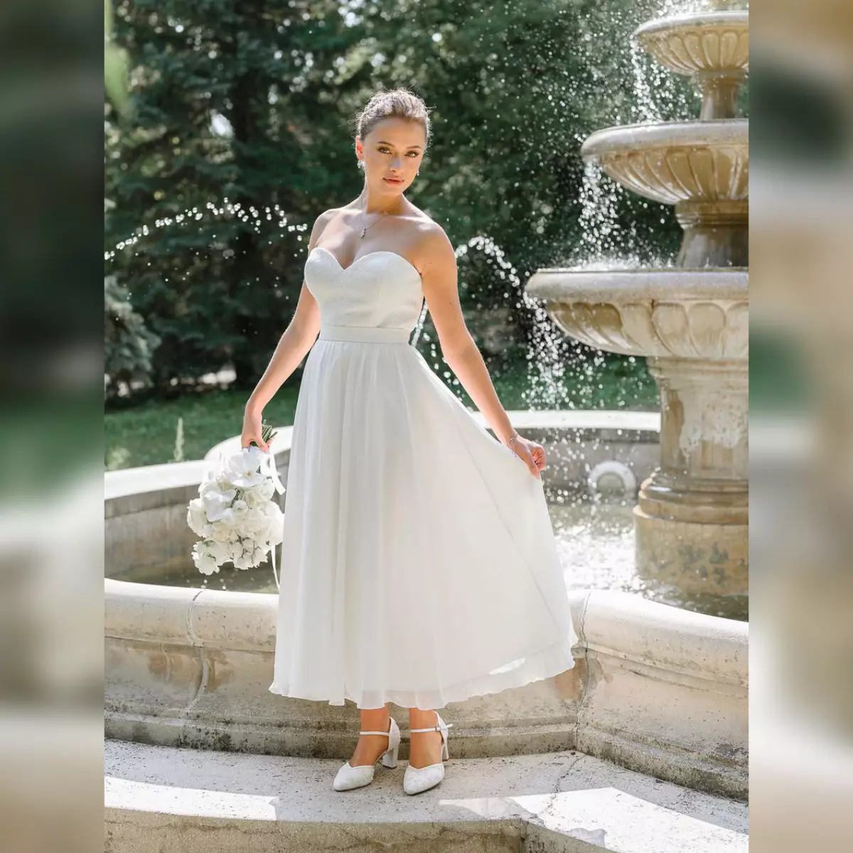 Passend zu diesem Modell empfehlen wir ein Brautkleid in Farbe Ivory sowie weitere Accessoires und Schmuck aus unserem Onlineshop.