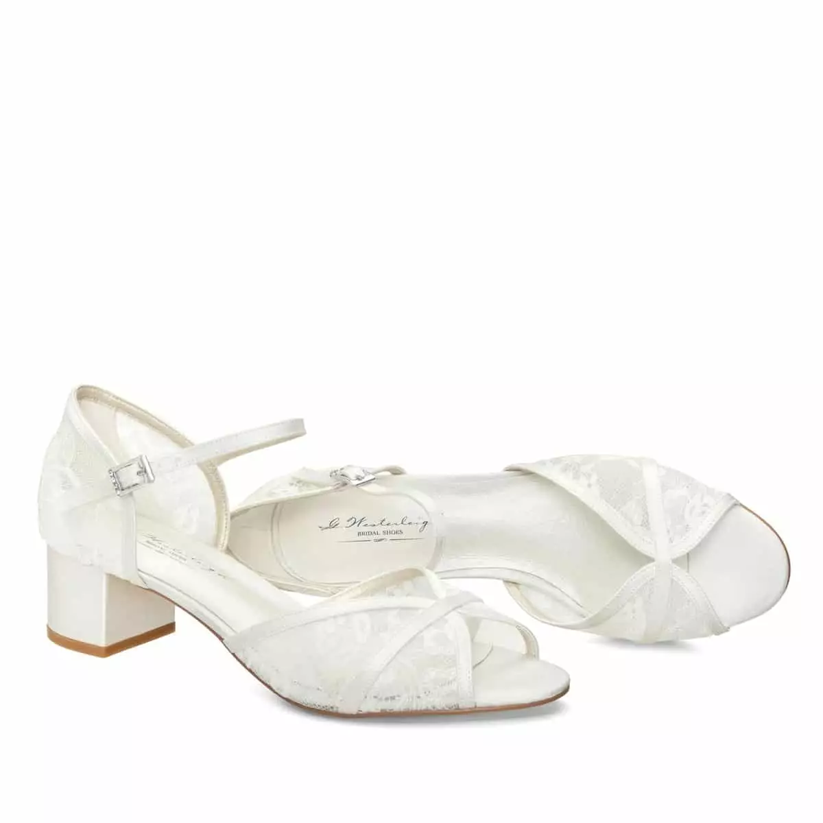 Der niedrige und stabile Blockabsatz von nur 4,5 cm sorgt dafür, dass die Brautschuhe Lindsey von G. Westerleigh sehr bequem zu tragen sind. Dieses Modell eignet sich auch gut als Ersatzpaar für den Hochzeitstanz. Passend zu diesem Modell empfehlen wir ein Brautkleid in Farbe Ivory.