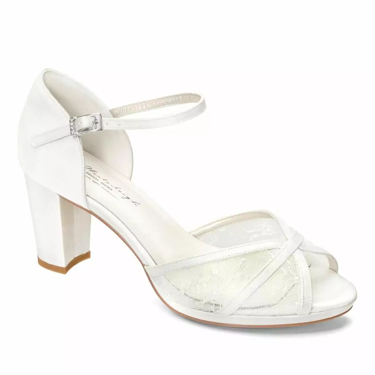 Der stabile Blockabsatz von 8 cm mit Plateausohle sorgt für einen maximalen Tragekomfort, sodass die Brautschuhe Madeline von G. Westerleigh den ganzen Tag getragen werden können. Dieses Modell eignet sich auch gut als Ersatzpaar für den Hochzeitstanz. Passend zu diesem Modell empfehlen wir ein Brautkleid in Farbe Ivory.