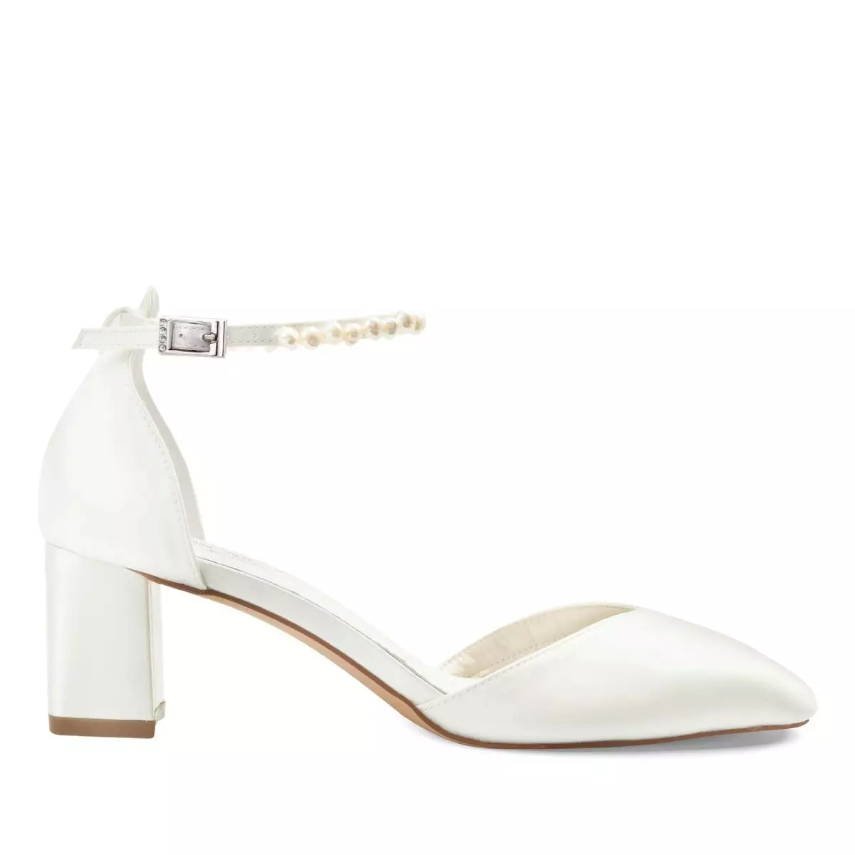 Wunderschöne Brautschuhe Madison von G. Westerleigh in einem eleganten Design. Einer der Favoriten aus der neuen Kollektion 2023! In Handarbeit gefertigt aus hochwertigem Satin in der Farbe Ivory. Dieses Modell kommt mit zwei Wechselriemen: Ein Perlenriemen, der mit cremefarbenen Süßwasserperlen verziert ist und ein klassischer Satinriemen. So kannst du dein Outfit auf verschiedene Arten variieren! Die weiche Gel-Polsterung und die Lederinnensohle sorgen für eine bequeme Passform und einen hohen Tragekomfort. Der stabile Blockabsatz von 6 cm und ein verstellbarer Riemen sorgen für zusätzlichen Komfort beim Tragen. Das Modell Madison von G. Westerleigh ist die ideale Wahl für Bräute und Brautjungfern, die auf der Suche nach exklusiven Brautschuhen mit einem trendigen Look sind.