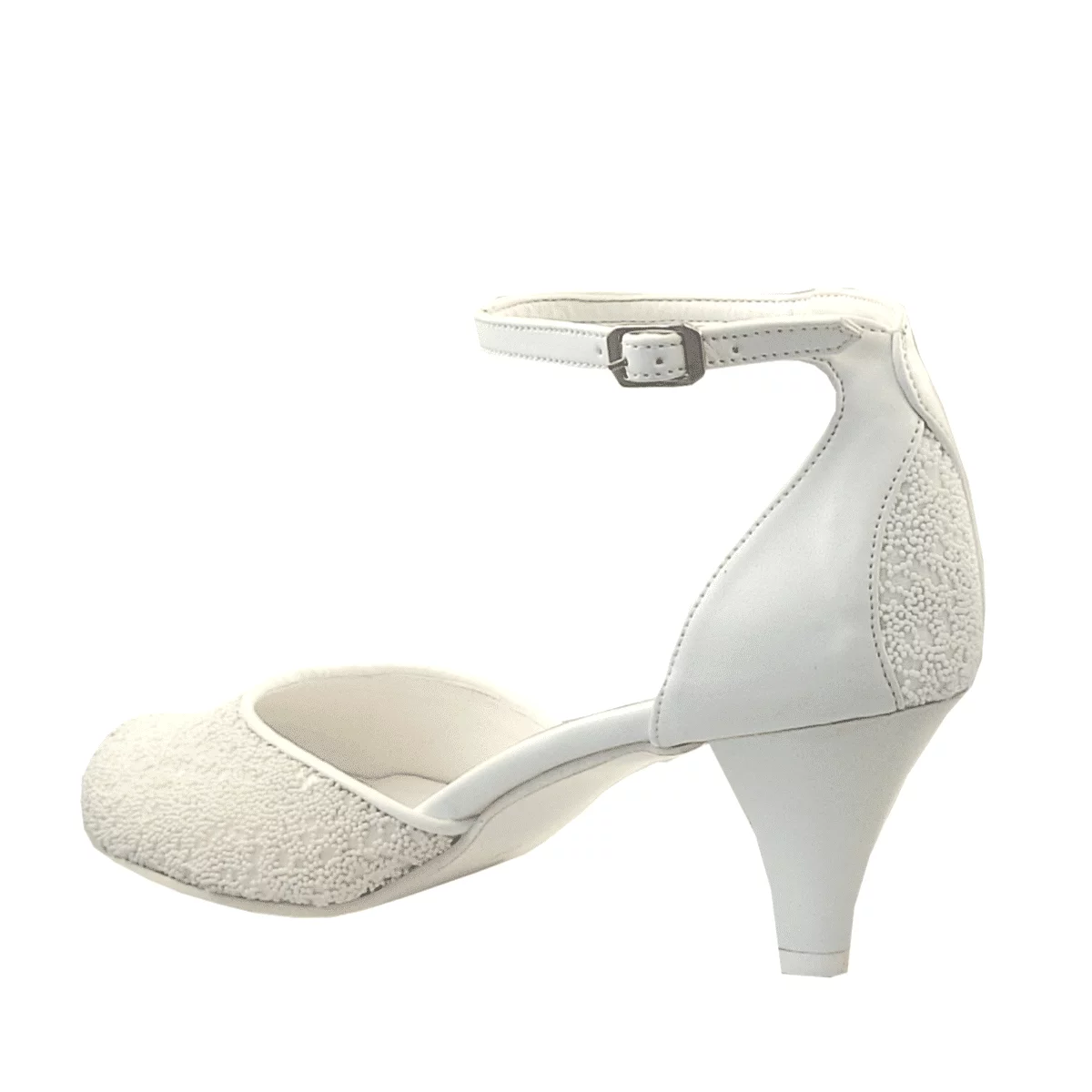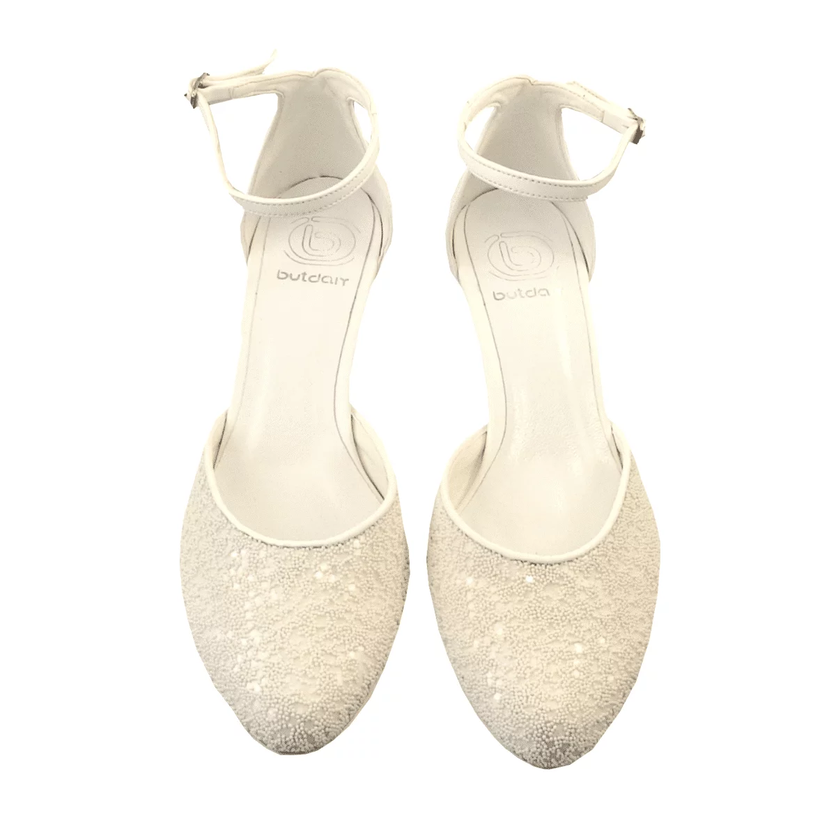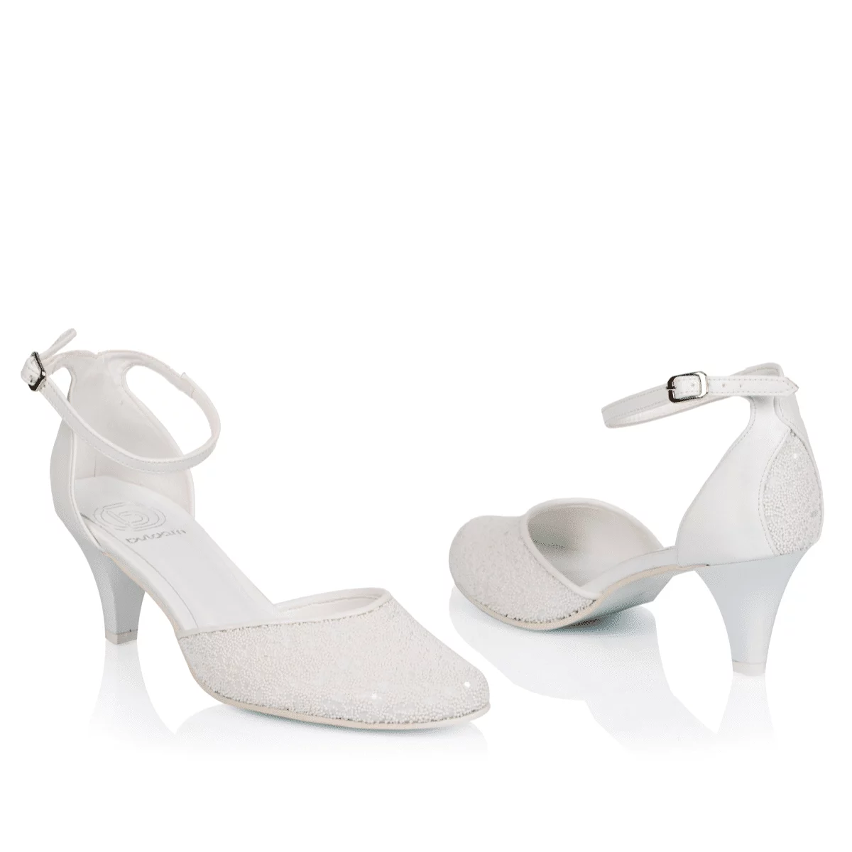 Die weißen Perlen glitzern bei Lichteinfall und setzen einen eleganten Akzent zur perlweißen Farbe der Schuhe. Die Hochzeitsschuhe Kira weiß sind nicht nur schön und stylisch, sondern auch sehr bequem. Dank dem niedrigen Absatz von nur 5 cm gehören die Hochzeitsschuhe Kira nicht zur Kategorie der High-Heels und können daher bequem getragen werden. Überzeugen Sie sich durch die hohe Qualität dieser Hochzeitsschuhe in Farbe Weiß.