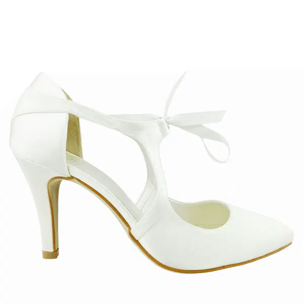 Die Sohle und das Innenmaterial bestehen übrigens zu 100% aus Leder, weshalb sie innen besonders weich und gleichzeitig sehr widerstandsfähig sind. Somit sind die Hochzeitsschuhe Mira auch für längere Hochzeiten und Aktivitäten wie dem Hochzeitstanz ideal geeignet. Die Kombination aus leicht schimmerndem Satin und einem stylischen und bequemen Absatz macht die Brautschuhe Mira zu einem universellen Klassiker und Highlight jeder Hochzeitsfeier. Wer keine hohen Absätze trägt und dennoch auf keinen Absatz verzichten möchte, findet in dem Modell Mira das ideale Brautschuh-Paar. Schließlich sorgt ein Absatz für optisch gestreckte Beine und rückt die Brautschuhe Mira in den Vordergrund.