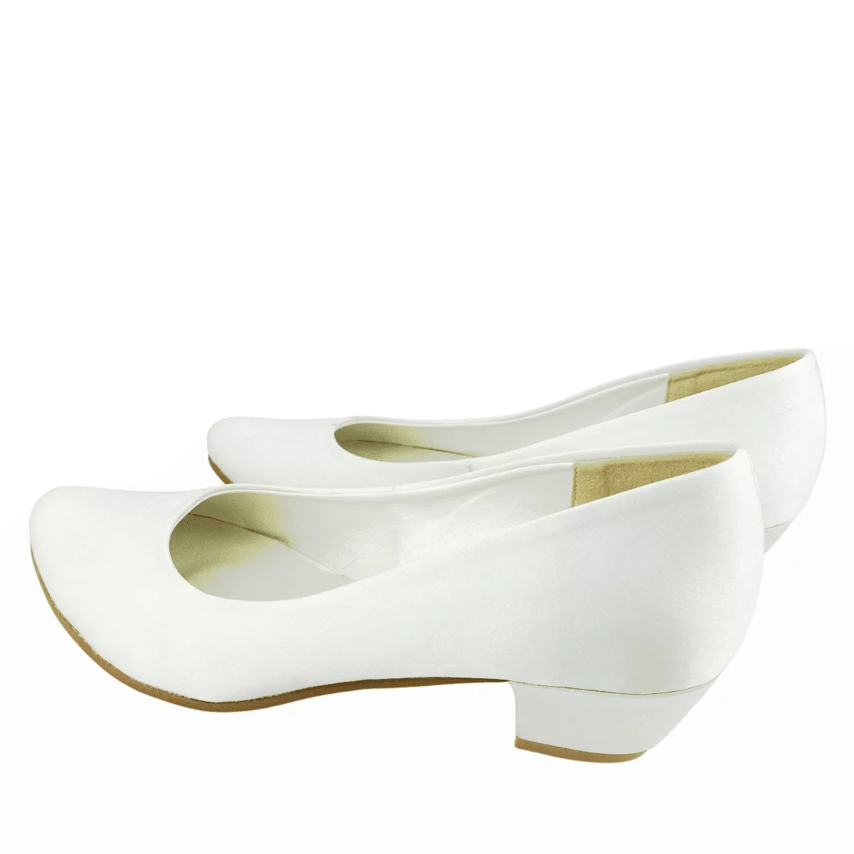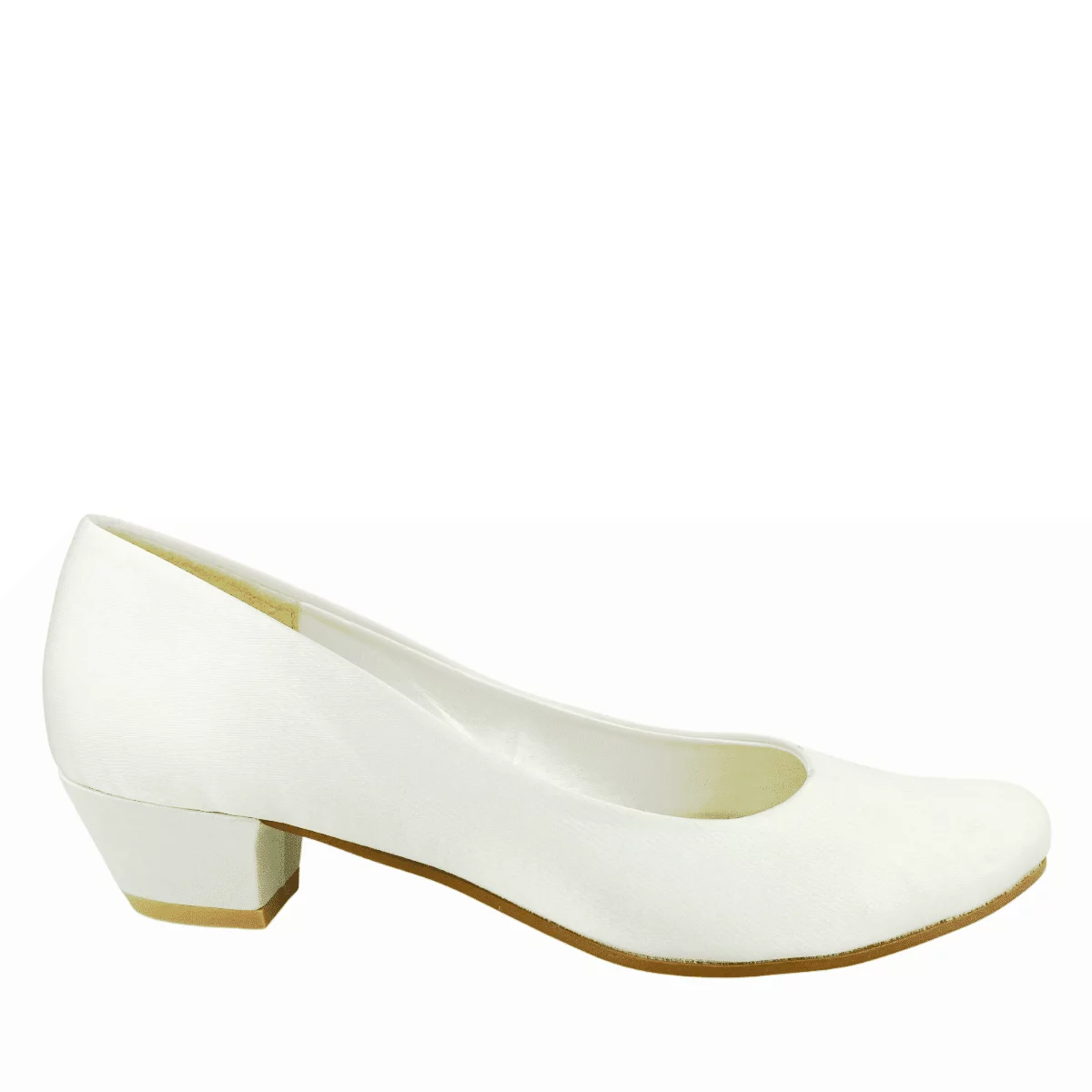 Diese Brautschuhe Stacy aus Satin in der schönen Farbe Ivory sind stylisch und bequem zugleich. Das Außenmaterial besteht aus hochwertigem Satin, das Innenmaterial und die Sohle bestehen zu 100% aus Leder. Die Brautschuhe Stacy Ivory sind im klassischen Design gehalten und haben einen bequemen flachen Absatz von nur 3 cm. Diese Schuhe sehen besonders stylisch aus und passen ganz gut zum langen Brautkleid. Dank der Latex-Schuhsohle und einem Einsatz in der Ferse sind diese Brautschuhe Stacy Satin Ivory besonders bequem.