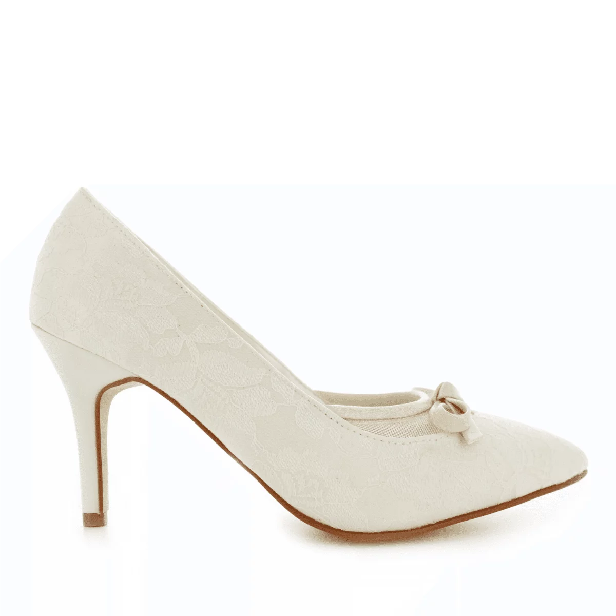 Die klassischen Brautschuhe 716 Ivory Spitze aus der White Lady Kollektion sind eine ideale Wahl für Bräute, die nach besonders schönen Brautschuhen im Vintage-Look suchen. Die Schuhe sind aus Satin und Spitze in Farbe Ivory gefertigt und mit Blumenmuster aus Spitze verziert. Dank dem 8 cm hohen Pfennigabsatz, sind diese Brautschuhe besonders bequem beim Laufen und Stehen. Selbst Tanzen wäre keine große Herausforderung, da die Decksohle innen gepolstert ist. Das Modell 716 Ivory Spitze passt für normal weite Füße. Diese klassische Pumps haben ein zartes Vintage-Look dank Spitzenbezug!