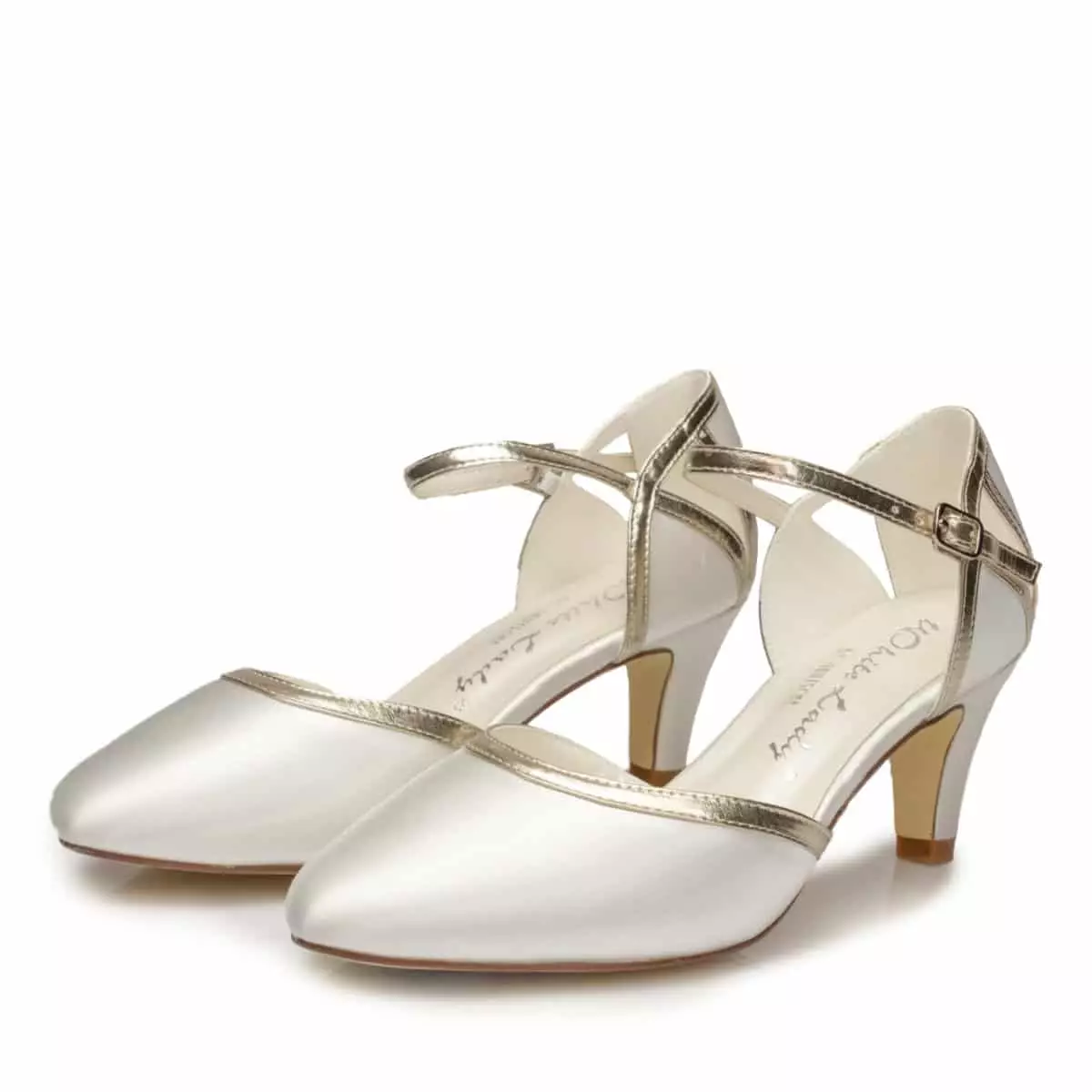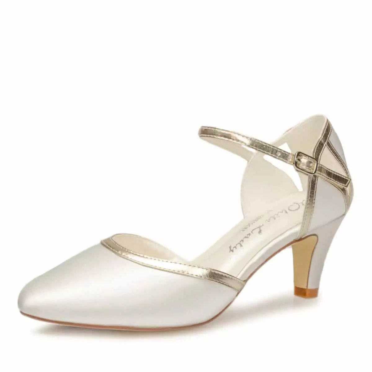 Außergewöhnliche Brautschuhe „753“ aus der Kollektion 2022 von White Lady. Diese stylischen Slingpumps bestehen aus hochwertigem Satin in Farbe Ivory mit goldenen Streifen als Verzierung. Dank dem 5 cm hohen Trichterabsatz, sind diese Brautschuhe besonders bequem zu Tragen. Einen maximalen Tragekomfort erzielen diese Schuhe durch einen Schaumstoff-Innenfutter. Eine ideale Wahl für Bräute, die nach trendigen und besonders stylischen Brautschuhen mit goldfarbenen Elementen für den Brautlook suchen!