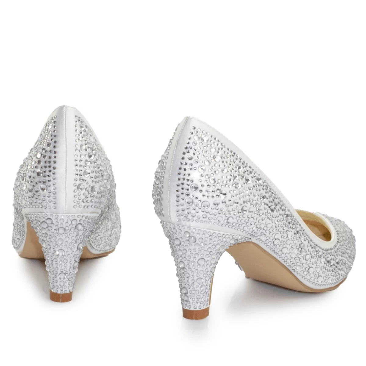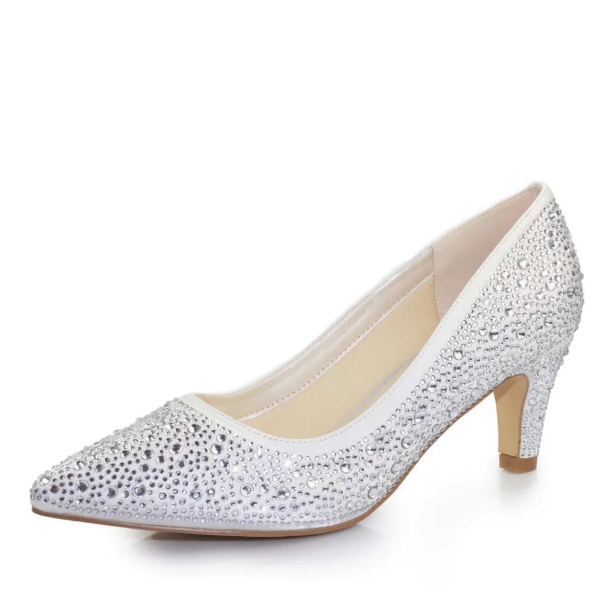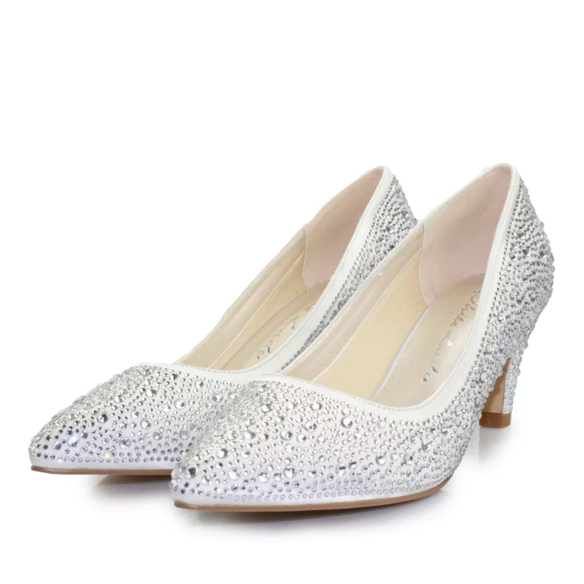 Die wunderschönen Brautschuhe 925 Ivory mit Strass aus der White Lady Kollektion sind besonders bequem und elegant zugleich. Die Schuhe sind aus Satin in Farbe Ivory gefertigt und mit Strasssteinen verziert. Dank dem 5,5 cm hohen Trichterabsatz, sind diese Brautschuhe besonders bequem beim Laufen und Stehen. Selbst Tanzen wäre keine große Herausforderung, da die Decksohle innen gepolstert ist. Das Modell 925 Ivory mit Strass passt für normal weite Füße. Diese klassische Pumps passen gut zum schlichten Brautkleid mit Schmuck!