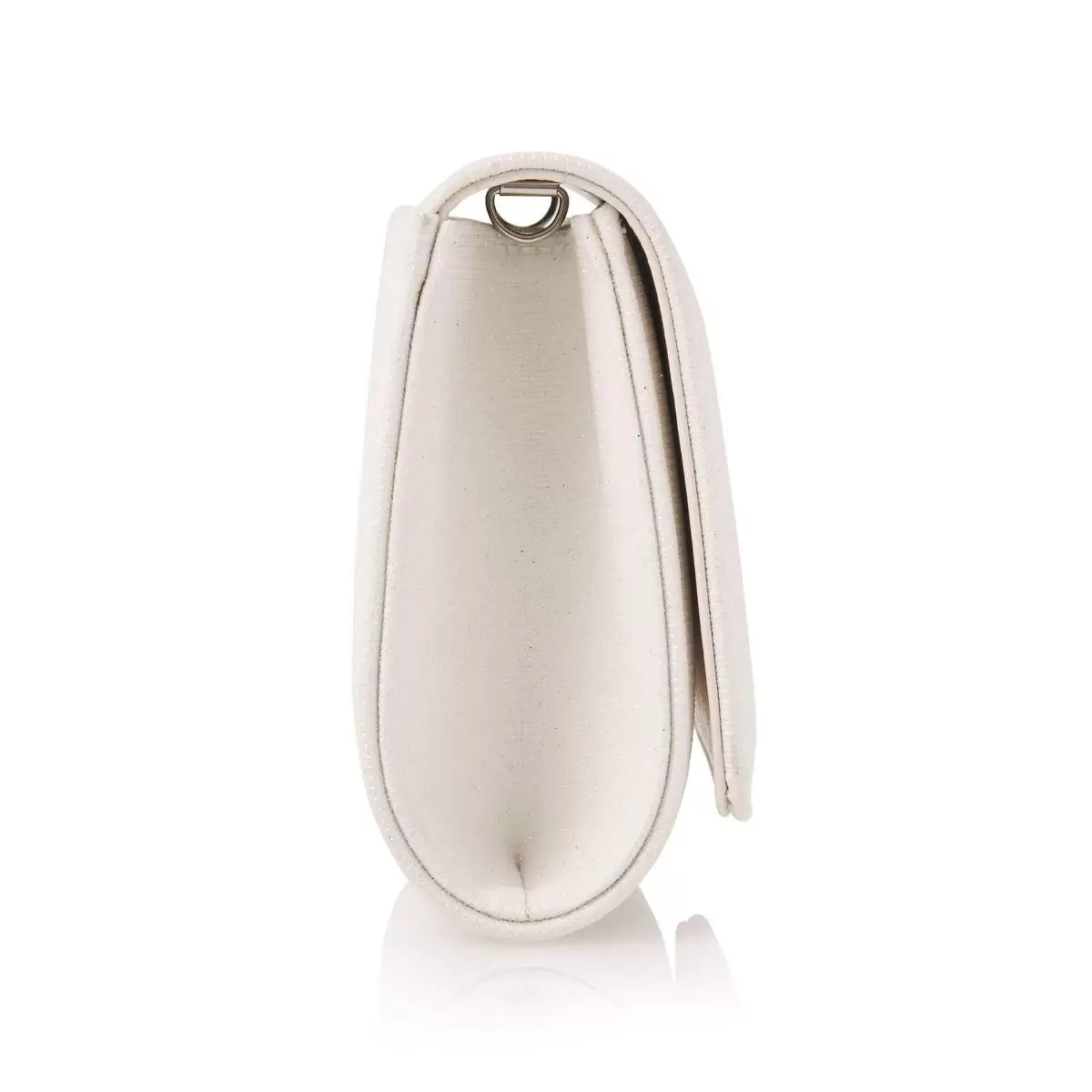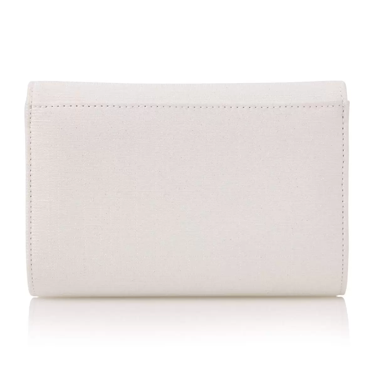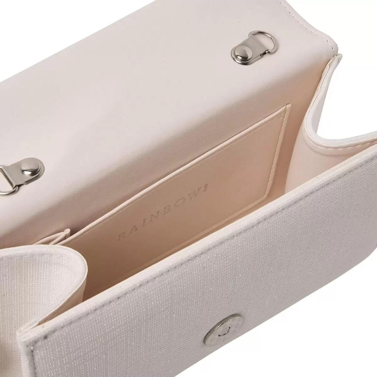 Exklusive Accessoires für die Braut mit hoher Qualität online kaufen. Wunderschöne Brauttasche Dafina Off-White Metallic mit Glitzern aus hochwertigem Textil. Die Brauttasche Dafina Off-White Metallic von Rainbow Club ist in der Farbe Off-White verfügbar und passt hervorragend zu einem Brautkleid in der Farbe Weiß oder Ivory. Es handelt sich um ein klassisches Clutch-Modell (Braut-Clutch). Die Brauttasche Dafina Off-White Metallic passt ideal zu einen Brautkleid in Farbe Weiß oder Ivory, kann aber auch zum Abendkleid, Abikleid, Ballkleid oder Verlobungskleid getragen werden. Die Clutch ist eine ideale Kombination zu den Brautschuhen „Jayne“ und „Faye“ von Rainbow Club.
