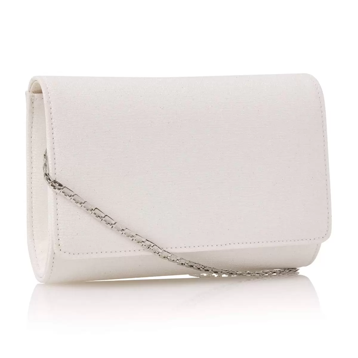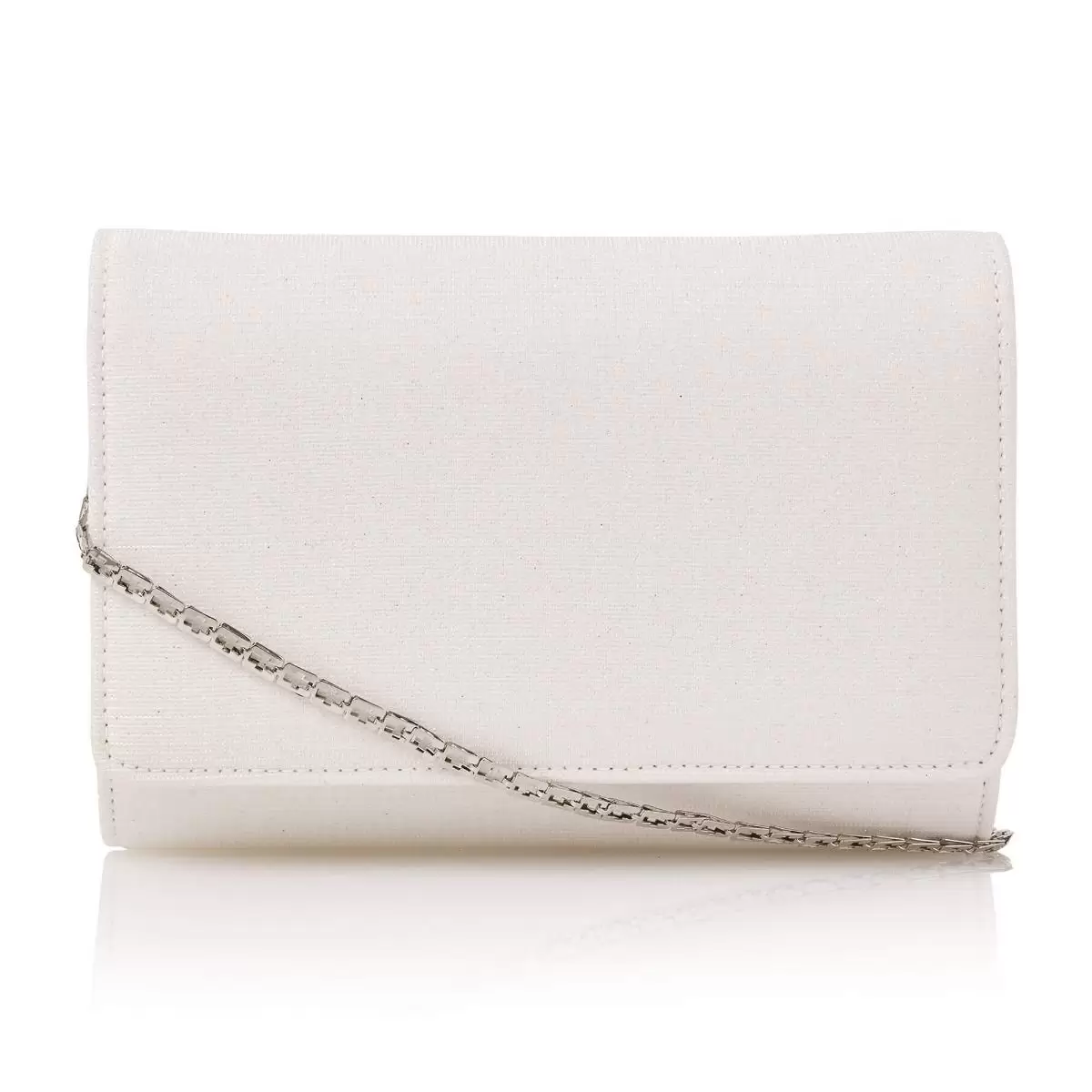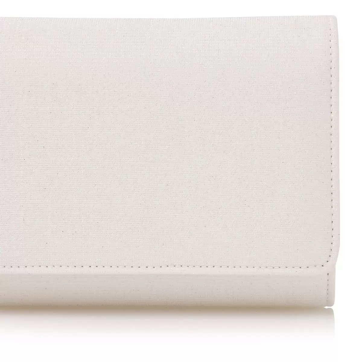 Exklusive Accessoires für die Braut mit hoher Qualität online kaufen. Wunderschöne Brauttasche Dafina Off-White Metallic mit Glitzern aus hochwertigem Textil. Die Brauttasche Dafina Off-White Metallic von Rainbow Club ist in der Farbe Off-White verfügbar und passt hervorragend zu einem Brautkleid in der Farbe Weiß oder Ivory. Es handelt sich um ein klassisches Clutch-Modell (Braut-Clutch). Die Brauttasche Dafina Off-White Metallic passt ideal zu einen Brautkleid in Farbe Weiß oder Ivory, kann aber auch zum Abendkleid, Abikleid, Ballkleid oder Verlobungskleid getragen werden. Die Clutch ist eine ideale Kombination zu den Brautschuhen „Jayne“ und „Faye“ von Rainbow Club.