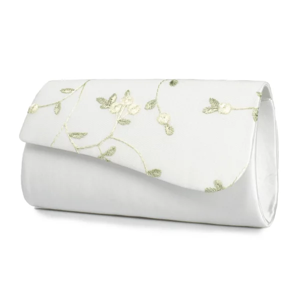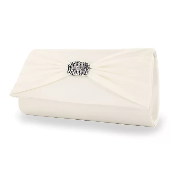 Wunderschöne Brauttasche Julia Ivory von White Lady aus hochwertigem Satin in Farbe Ivory (Elfenbeinfarbe), vorne mit Spitze überzogen. Die Brauttasche Julia besteht aus hochwertigem Satin und kommt in einem klassischen Design mit Spitzenbezug. Der praktische Schnappverschluss mit Magnetdruckknopf ist fest verschließbar, sodass die Tasche nicht von selbst aufgehen kann. Zu dieser Tasche passt ein schlichtes Brautkleid oder Abendkleid in der Farbe Ivory oder Weiß mit passendem Schmuck. Wir empfehlen Brautschuhe aus Satin in der passenden Farbe Ivory, wie zum Beispiel die Modelle 715, 718, 716 oder 800 von White Lady.