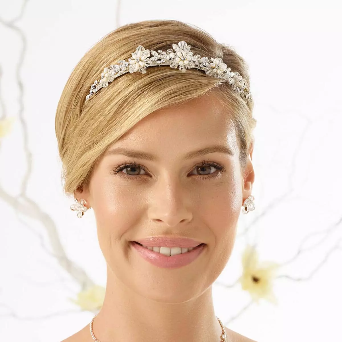 Das wunderschöne Diadem D34 von Avalia (Bianco Evento) ist hochwertig verarbeitet und mit Zierperlen und Kristallsteinen verziert. Dank der flexiblen Bögen passt sich das Diadem D34 jeder Frisur und Kopfform an, was es sehr universell einsetzbar macht. Die Höhe des Diadems beträgt 2,5 cm. Ein stylisches Accessoire, welches dein Brautlook verschönert und unterzeichnet. Das Diadem D34 ist hochwertig verarbeitet und in der EU sorgfältig hergestellt. Außerdem ist das Metallteil des Diadems versilbert und nickelfrei (allergiefrei) und deswegen passt es auch zur empfindlichen Haut. Wir empfehlen dazu das passende Schmuckset N23 von Avalia.