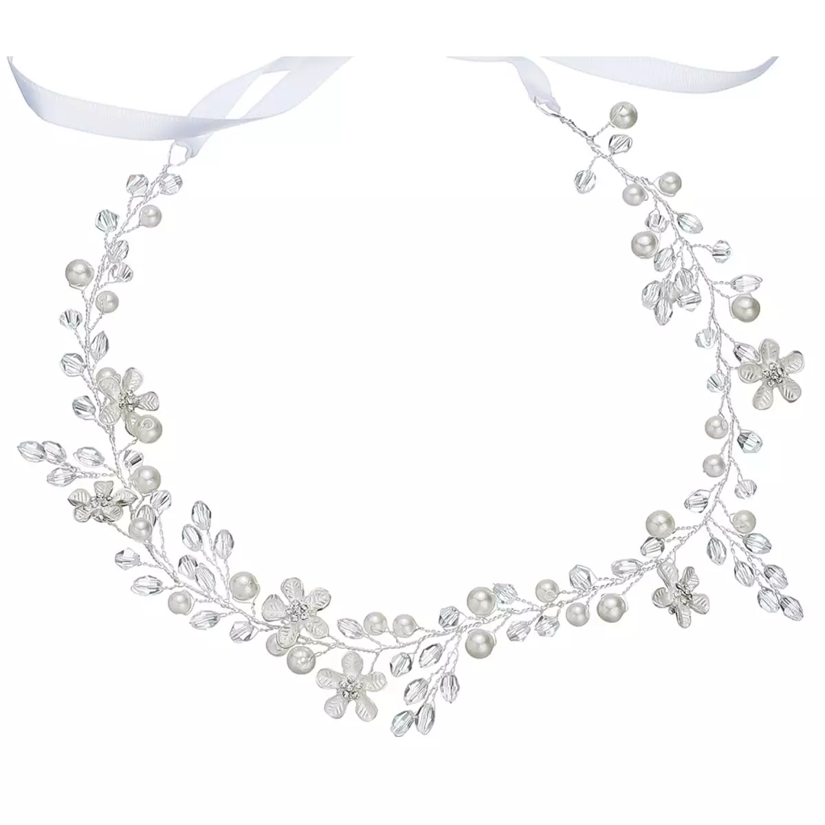 Der zarte Kopfschmuck HS-J4637S mit Silber Kristallblumen von G. Westerleigh kommt als Haarband und ist mit Kristallen und Perlen verziert, welche in aufwändiger Handarbeit eingearbeitet wurden. Der Haarband verwandelt jede Frisur zu einer Traumfrisur. Dieser Kopfschmuck lässt sich ideal mit anderen Accessoires kombinieren und wirkt besonders schön mit einem Brautkleid, Abendkleid oder Kommunionkleid.
