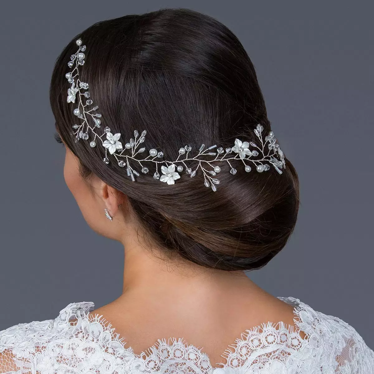 Der zarte Kopfschmuck HS-J4740 mit kleinen, glitzernen Ivory-Blumen von G. Westerleigh kommt als Haarband und ist mit Kristallen verziert, welche in aufwändiger Handarbeit eingearbeitet wurden. Das Haarband verwandelt jede Frisur zu einer Traumfrisur. Dieser Kopfschmuck lässt sich ideal mit anderen Accessoires kombinieren und wirkt besonders schön mit einem Brautkleid, Abendkleid oder Kommunionkleid.