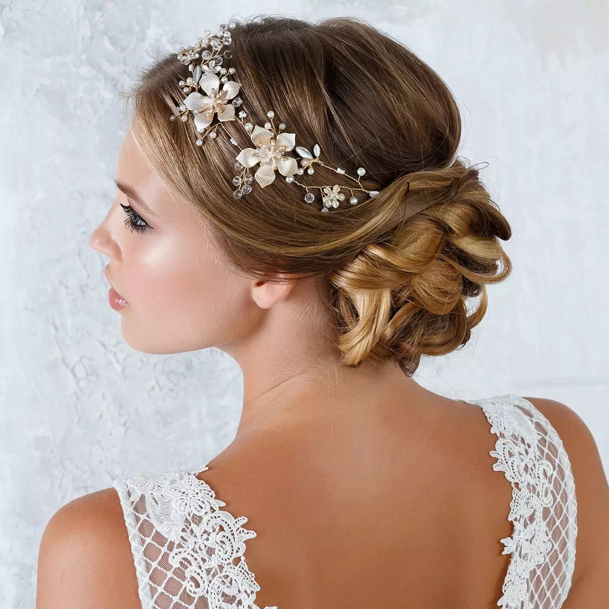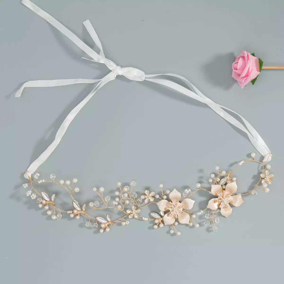 Der wunderschöne Kopfschmuck HS-J5009 mit dekorativen Blüten in Gold von G. Westerleigh kommt als Haarband und ist mit Kristallen verziert, welche in aufwändiger Handarbeit eingearbeitet wurden. Das Haarband verwandelt jede Frisur zu einer Traumfrisur. Dieser Kopfschmuck lässt sich ideal mit anderen Accessoires kombinieren und wirkt besonders schön mit einem Brautkleid, Abendkleid oder Kommunionkleid.
