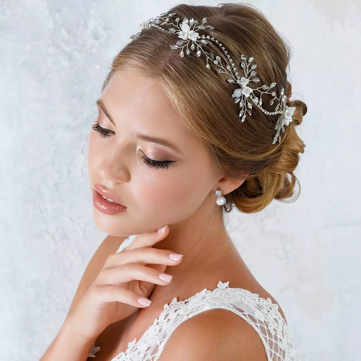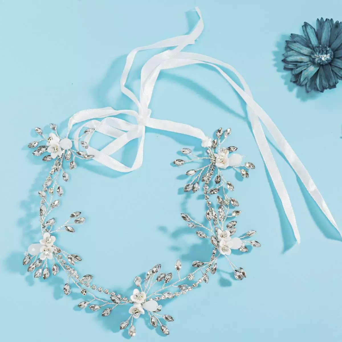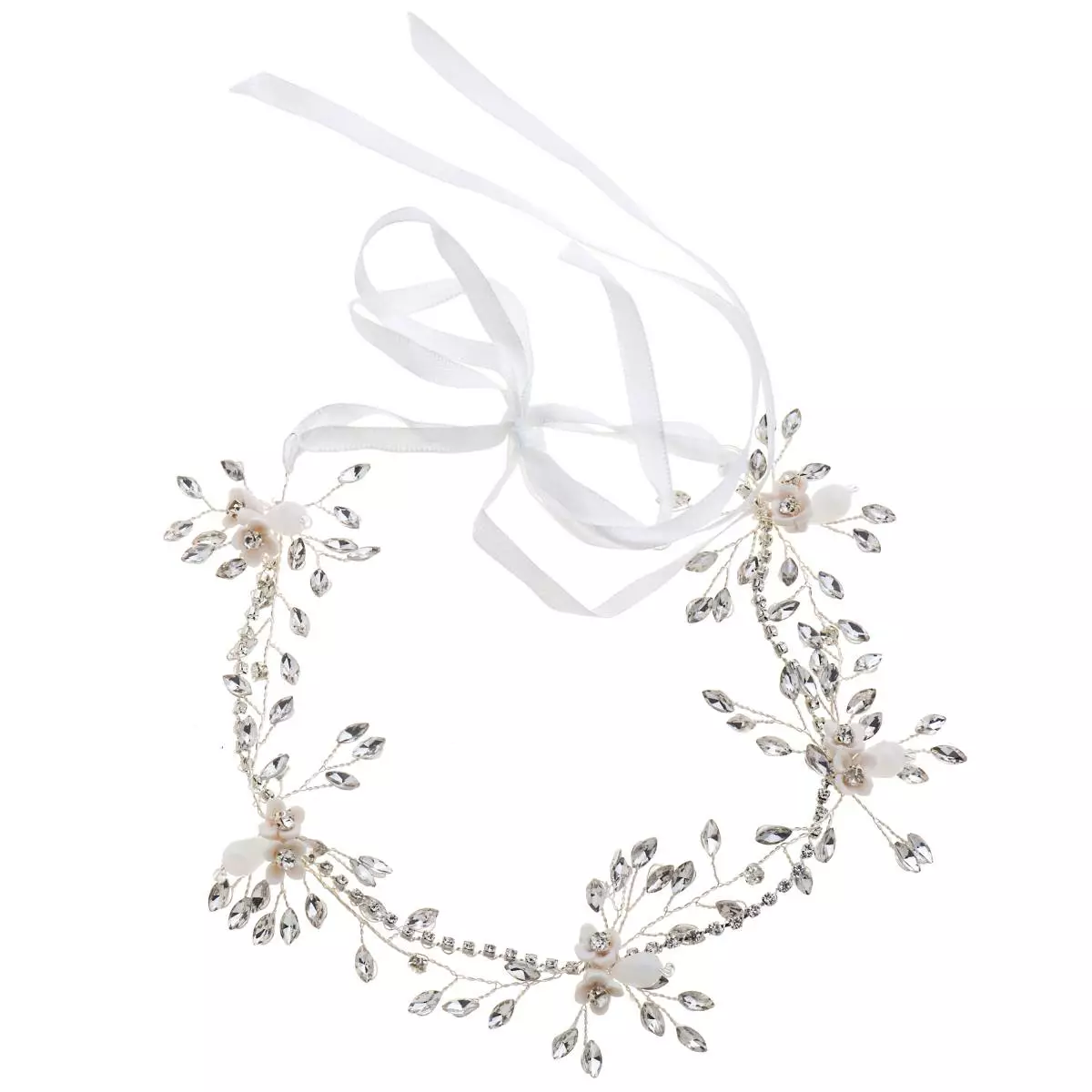 Der hübsche Kopfschmuck HS-J5052 mit cremefarbenen Blumen und Strass von G. Westerleigh kommt als Haarband und ist mit Kristallen verziert, welche in aufwändiger Handarbeit eingearbeitet wurden. Das Haarband verwandelt jede Frisur zu einer Traumfrisur. Dieser Kopfschmuck lässt sich ideal mit anderen Accessoires kombinieren und wirkt besonders schön mit einem Brautkleid, Abendkleid oder Kommunionkleid.