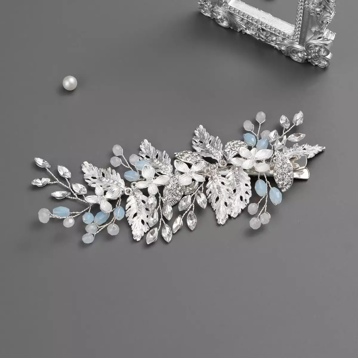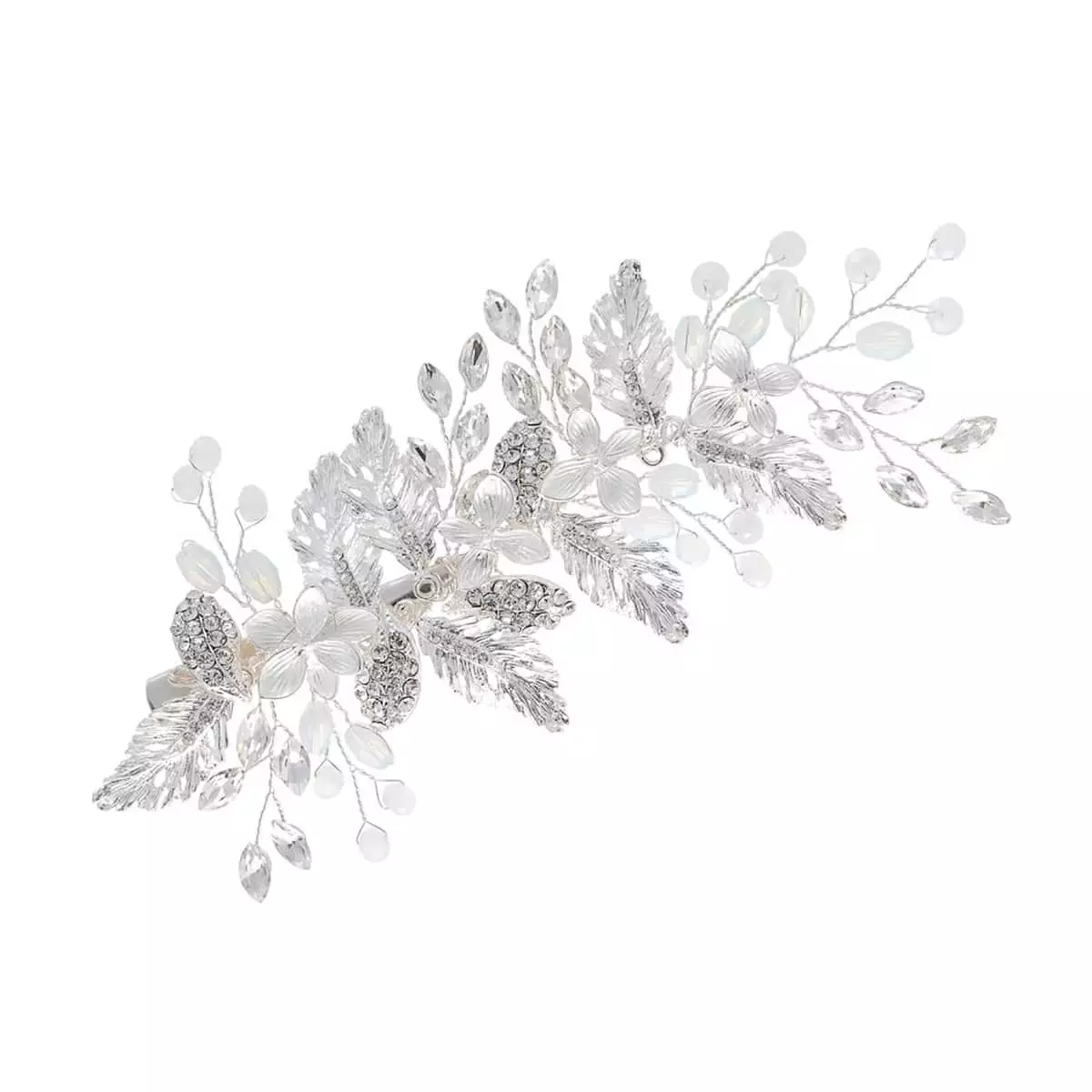 Moderner und eleganter Haarclip HC5785 von G. Westerleigh aus der aktuellen Kollektion. Klassisches Design mit schimmernden Kristallen in Silber- und Opalfarben. Der Clip besteht aus nicht allergischen Materialien (nickel- und bleifrei) und ist mit Silber überzogen. Dieser Kopfschmuck lässt sich ideal mit anderen Accessoires und Schmuck kombinieren und passt ideal zu einem Brautkleid oder Abendkleid.